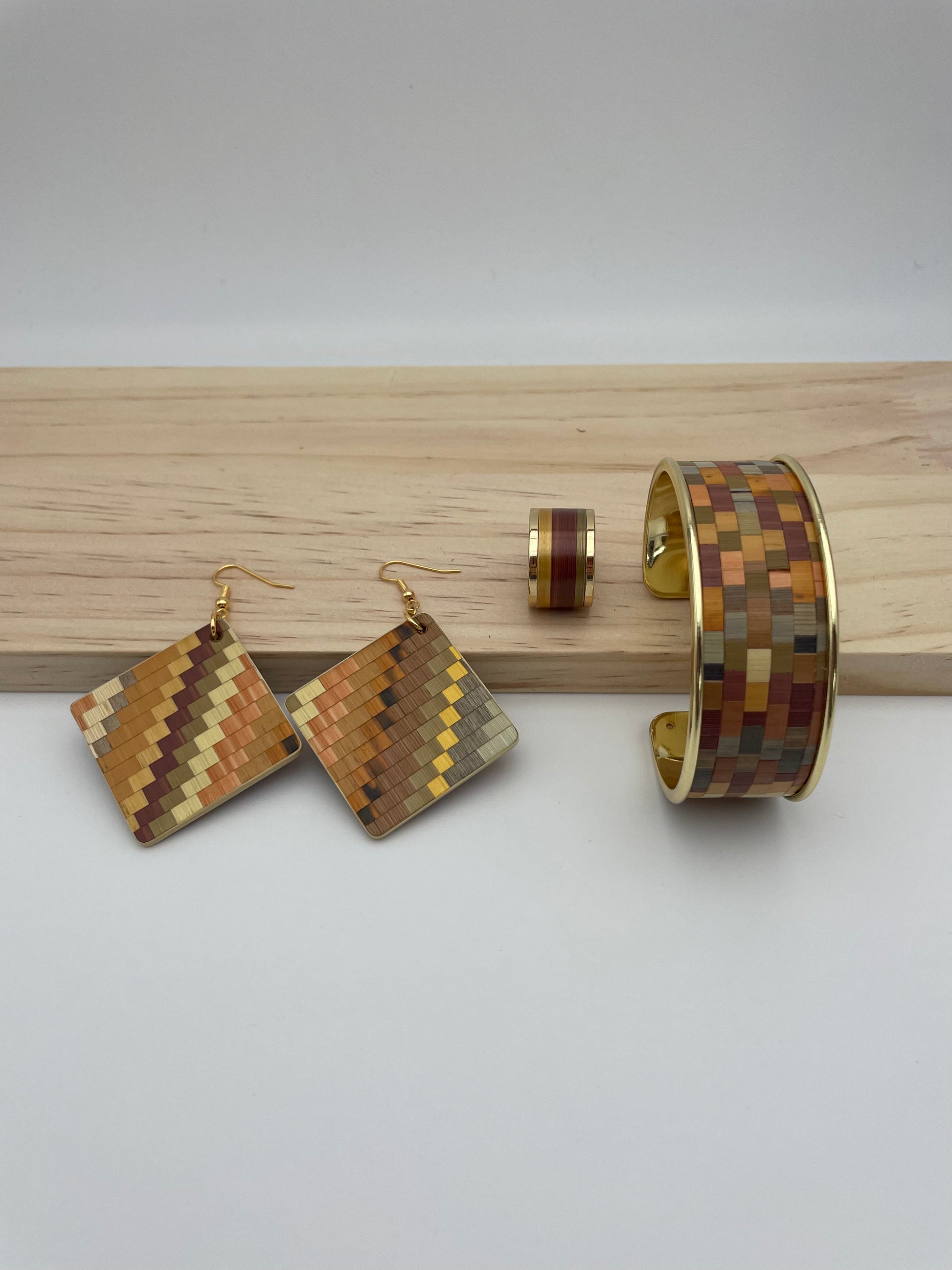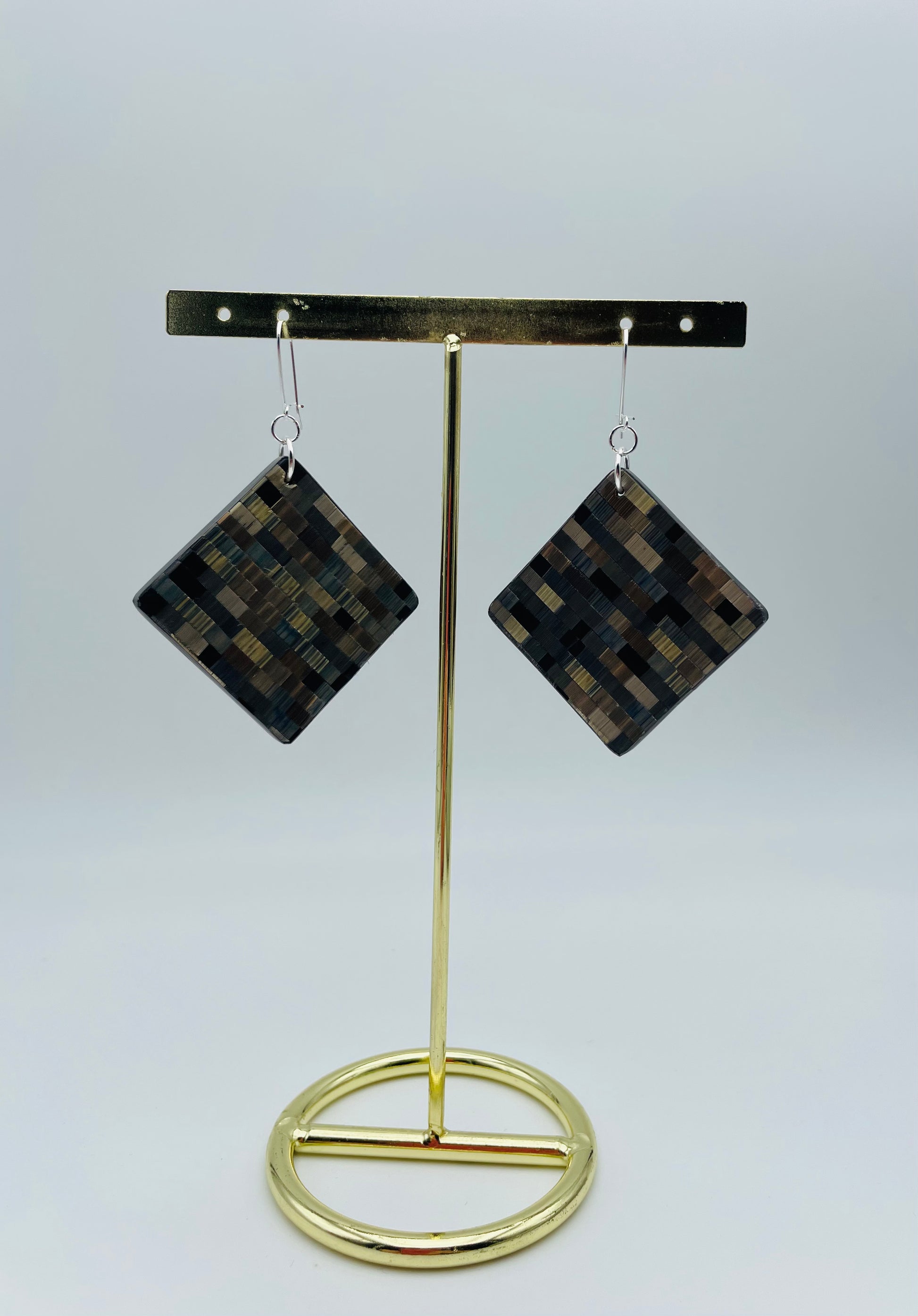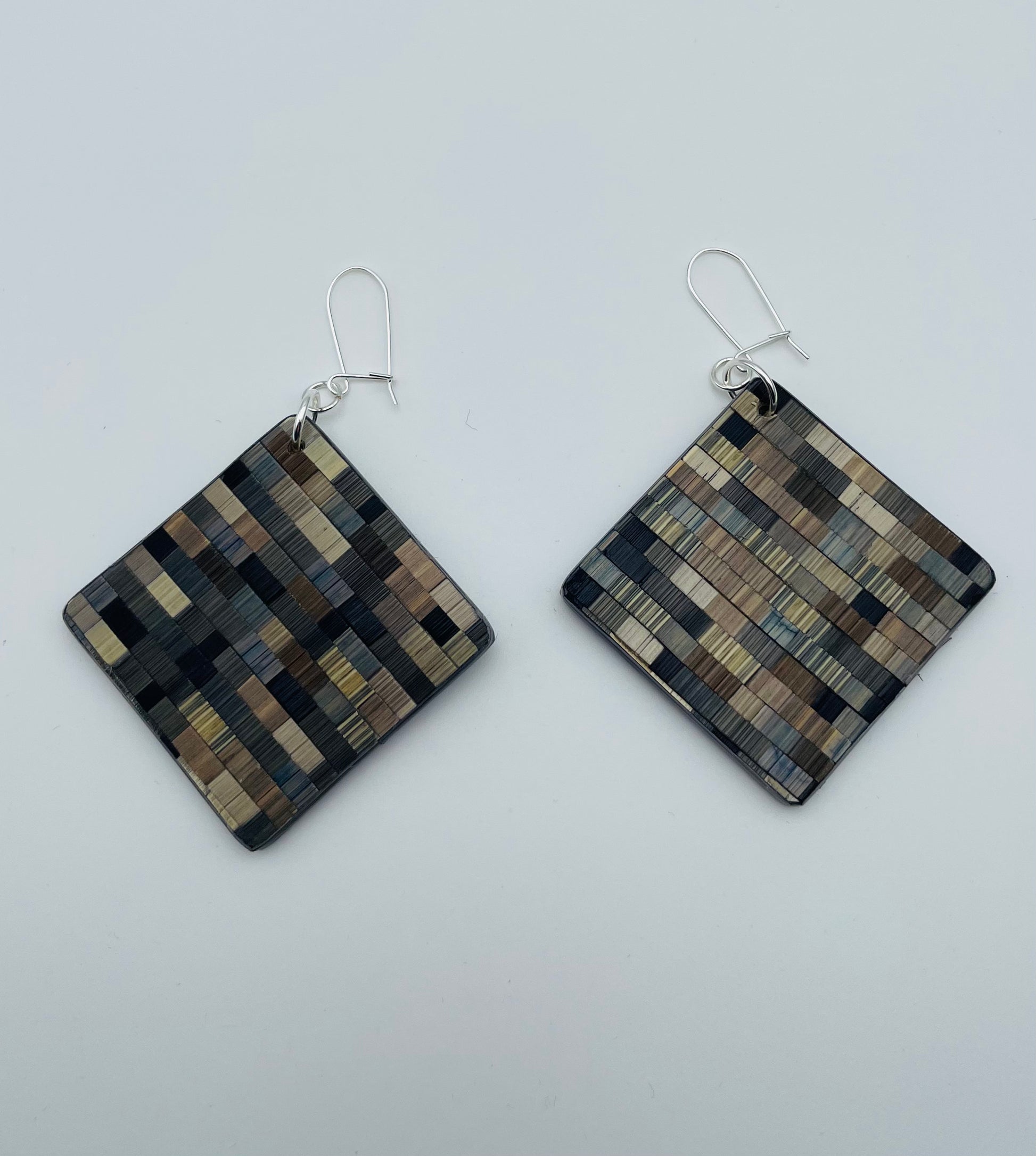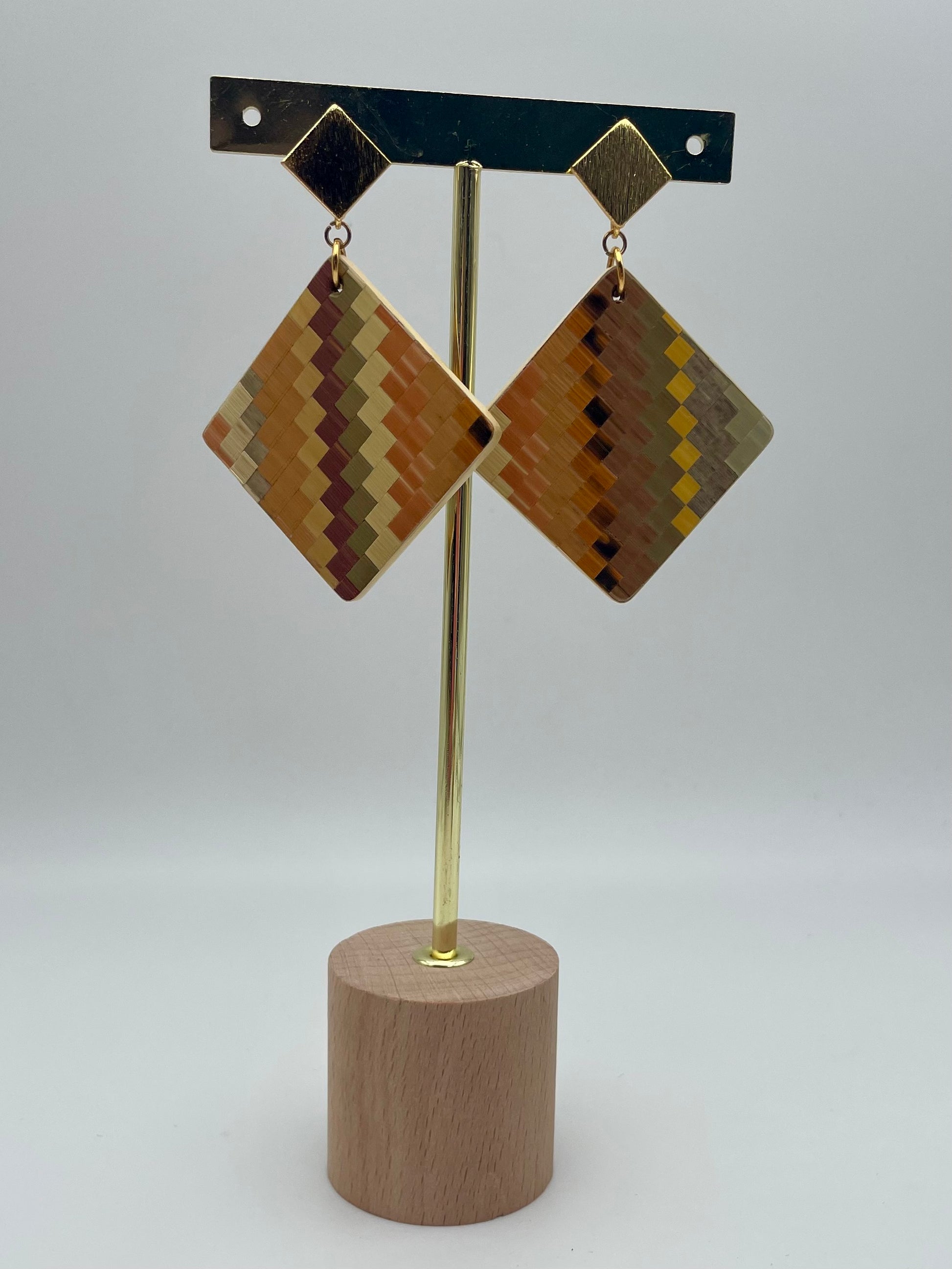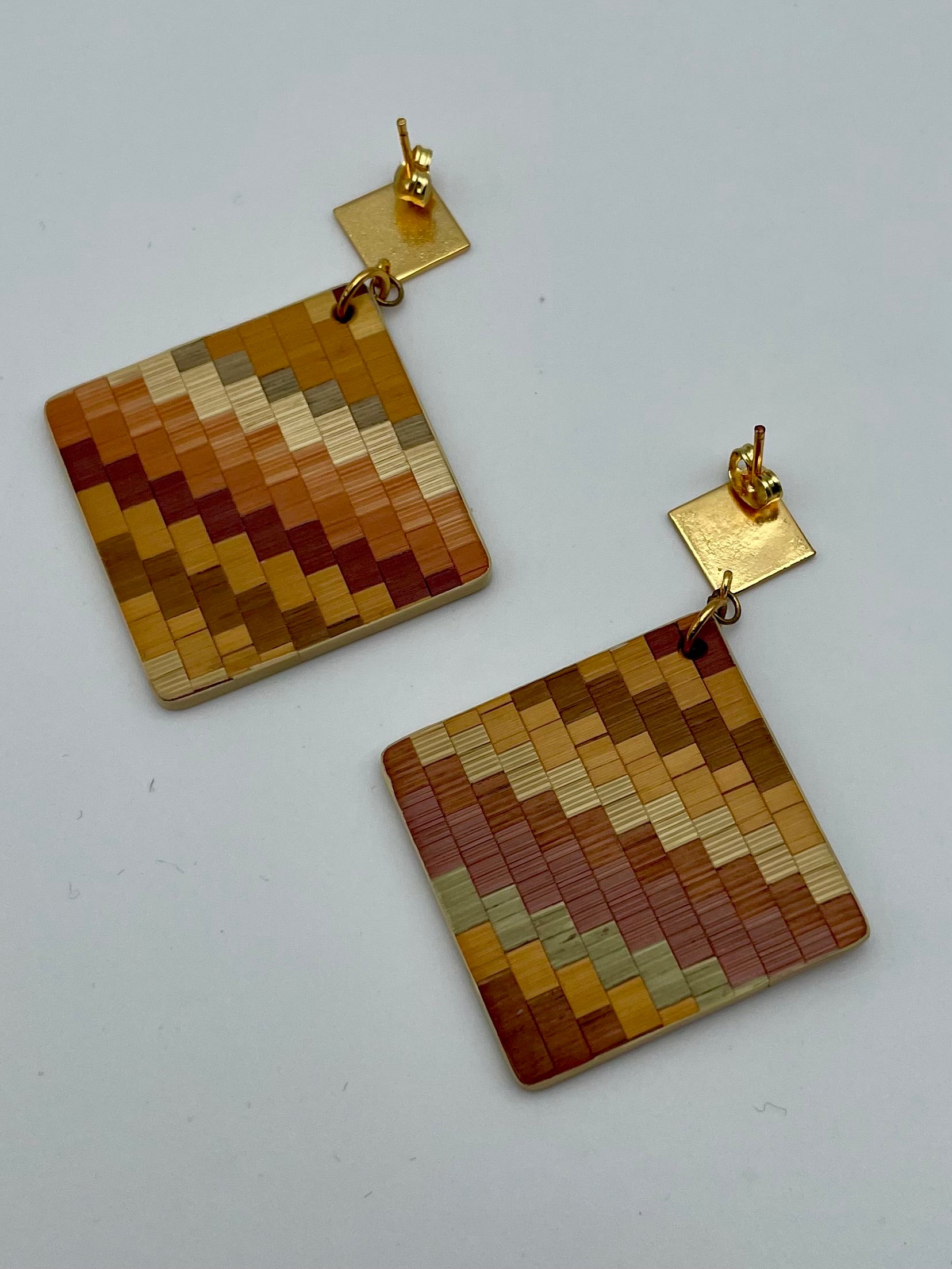 Apportez une touche d’élégance à votre tenue avec notre collection Mosaïque. Chaque paire de boucles d'oreilles est faite de paille finement découpée et mélangée pour composer un style unique. Les couleurs et les formes se fondent pour créer un motif complexe, donnant vie à des boucles pendantes carrées.
