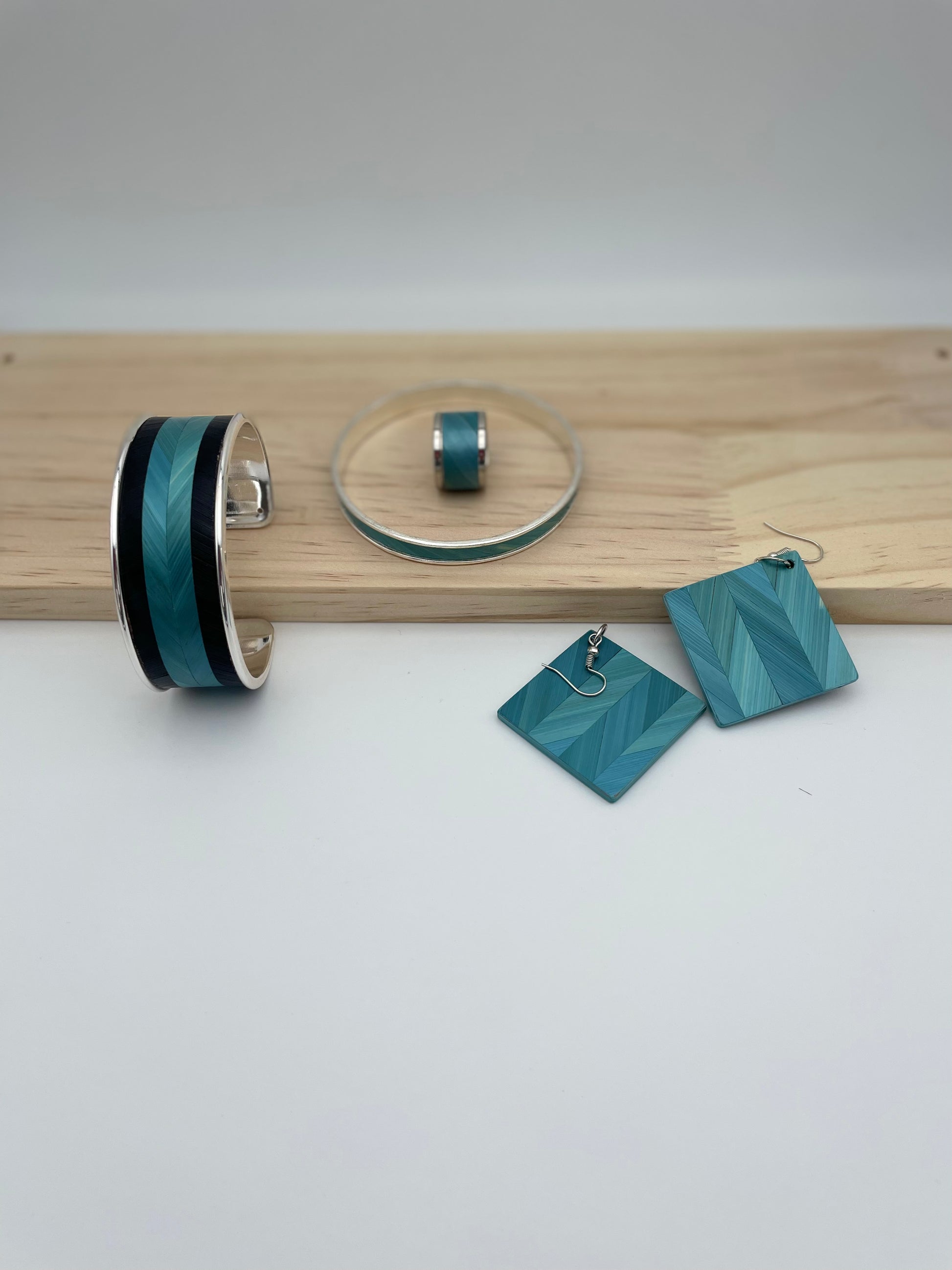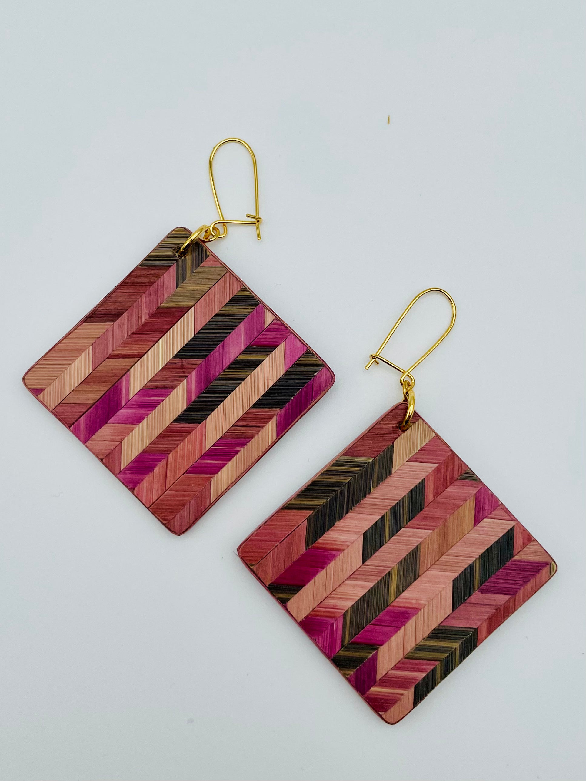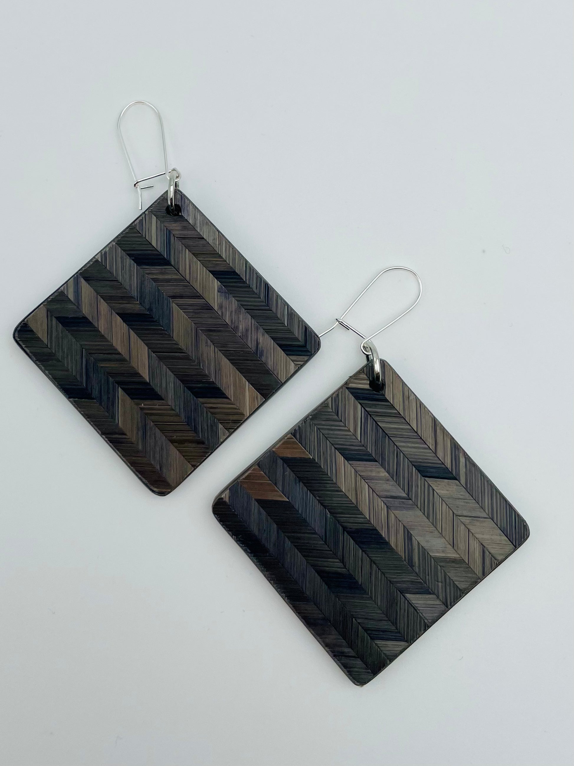 Découvrez Collection Chevron, des boucles d’oreilles pendantes haut de gamme. Entièrement recouvertes de marqueterie de paille en motif chevron, ces pièces artistiques produisent une texture 3D subtile et élégante qui mettra en valeur votre look. Laissez votre style scintiller avec des détails d'une inégalée exclusivité.
