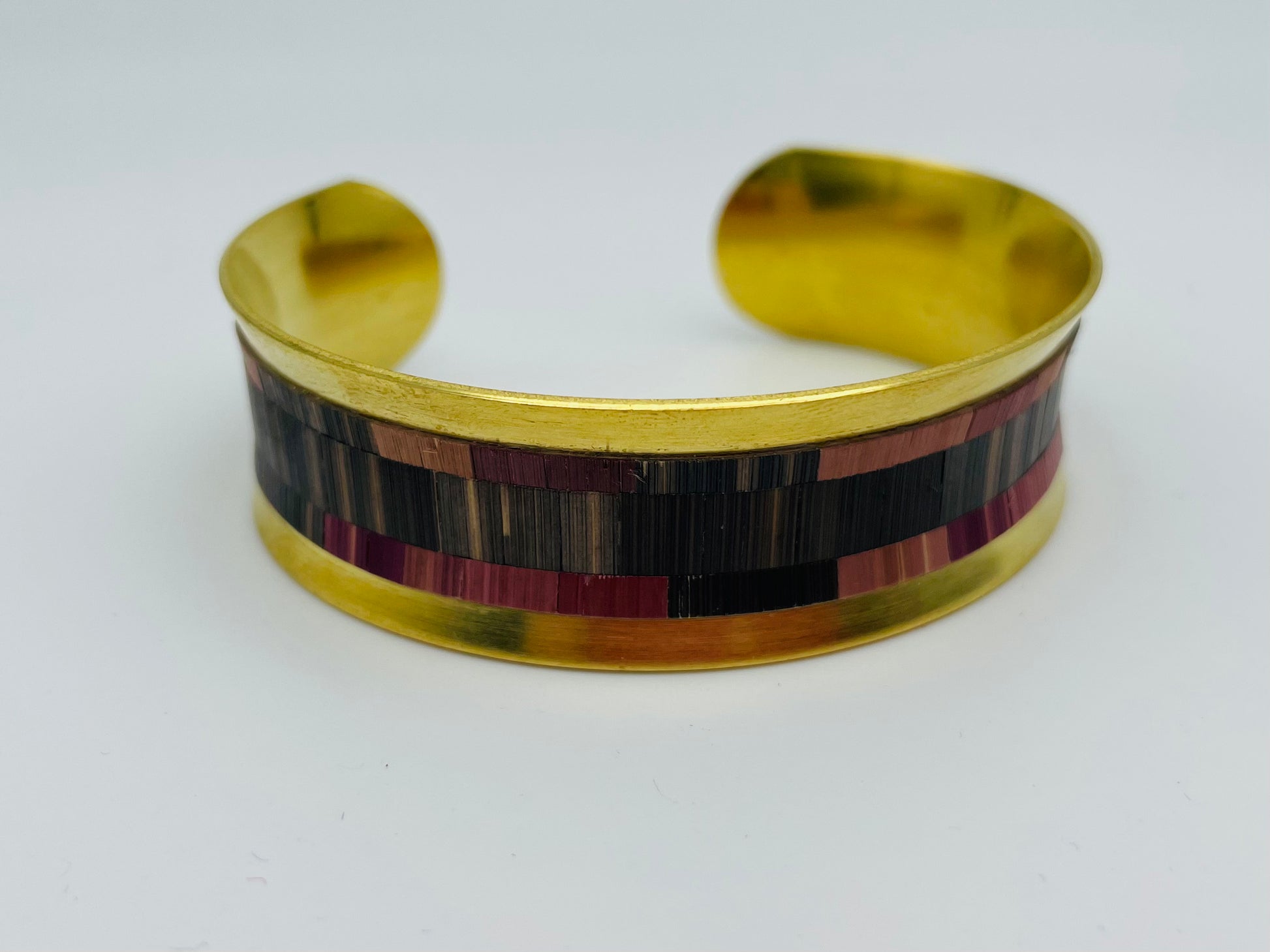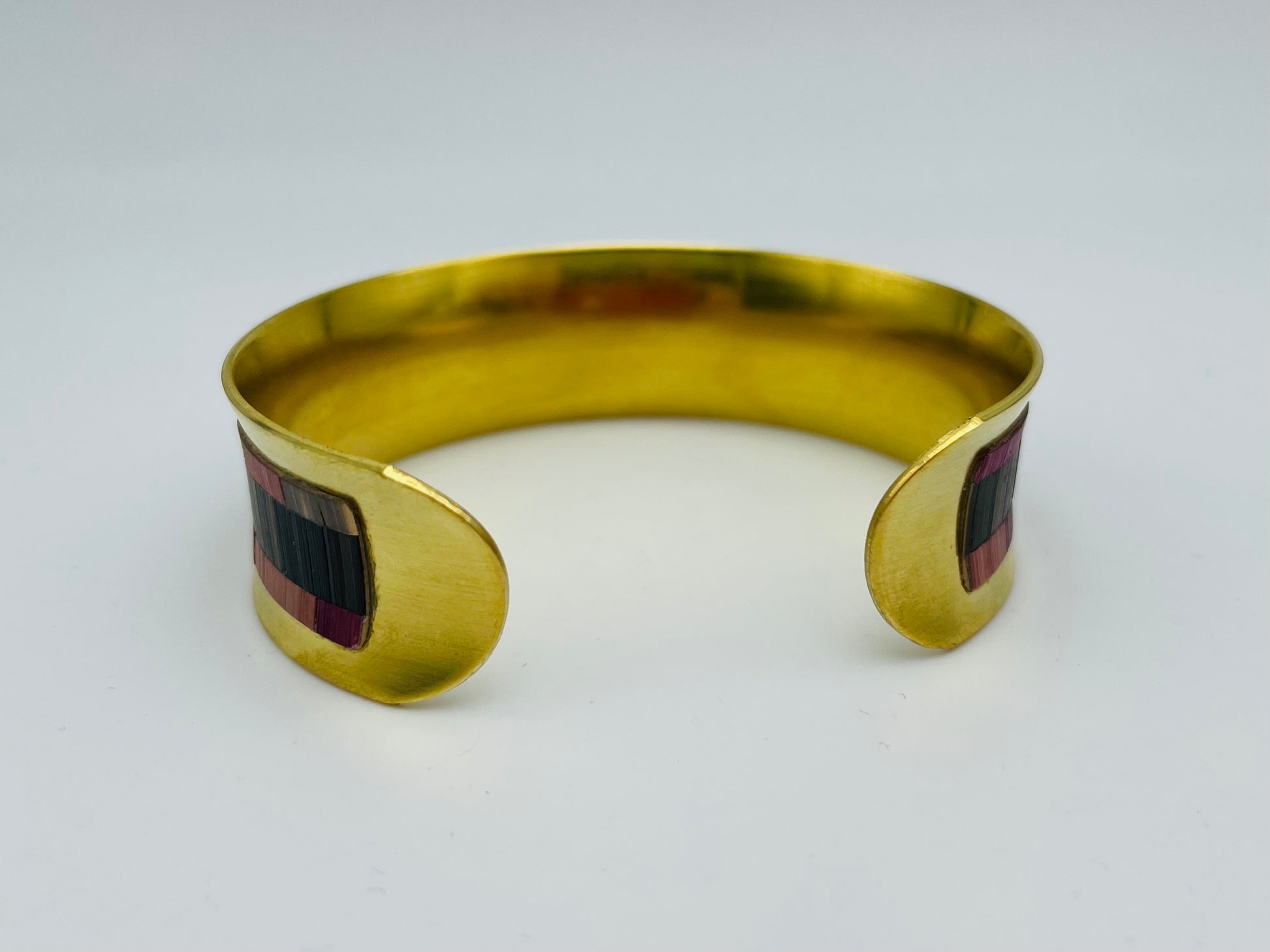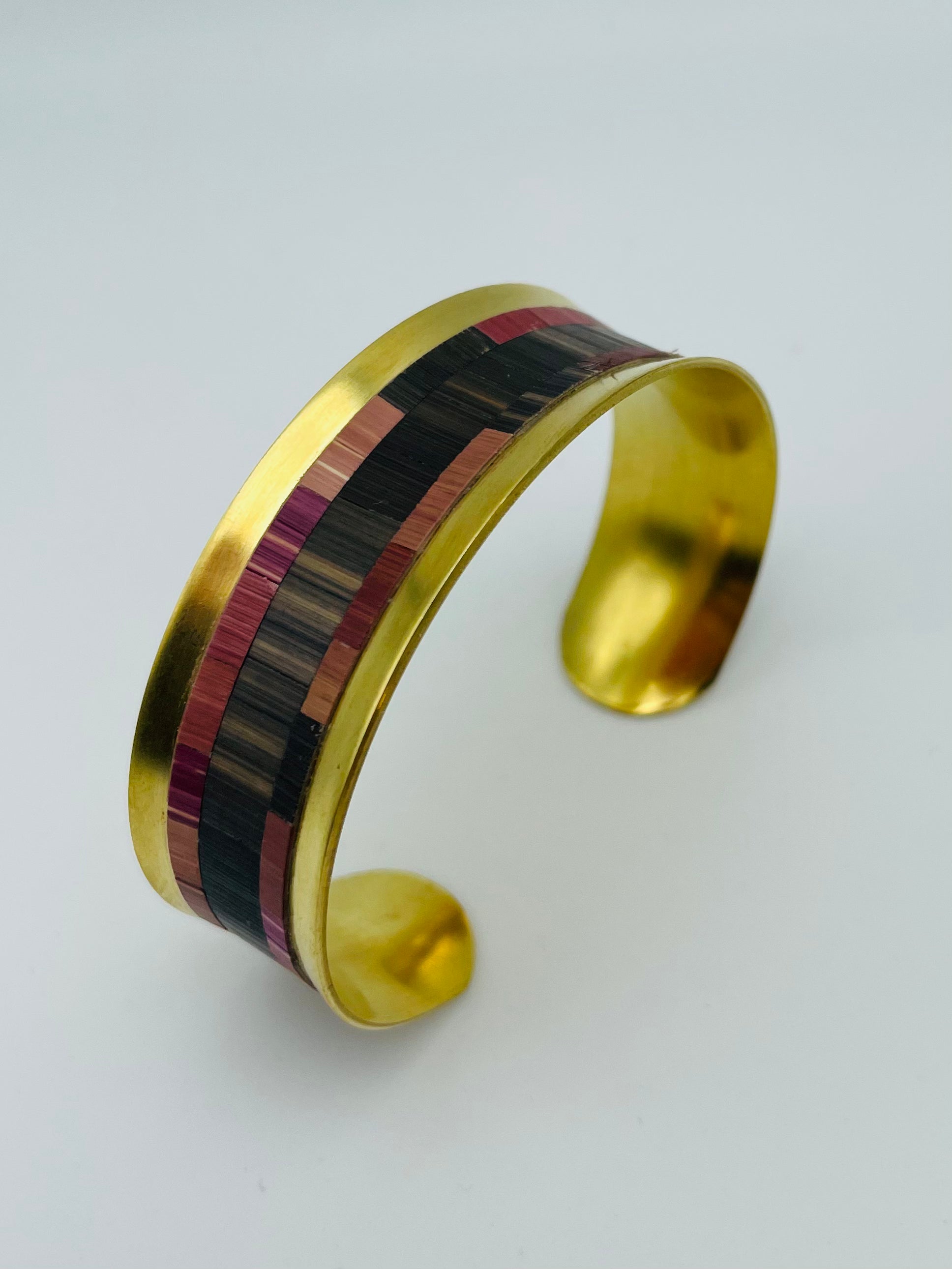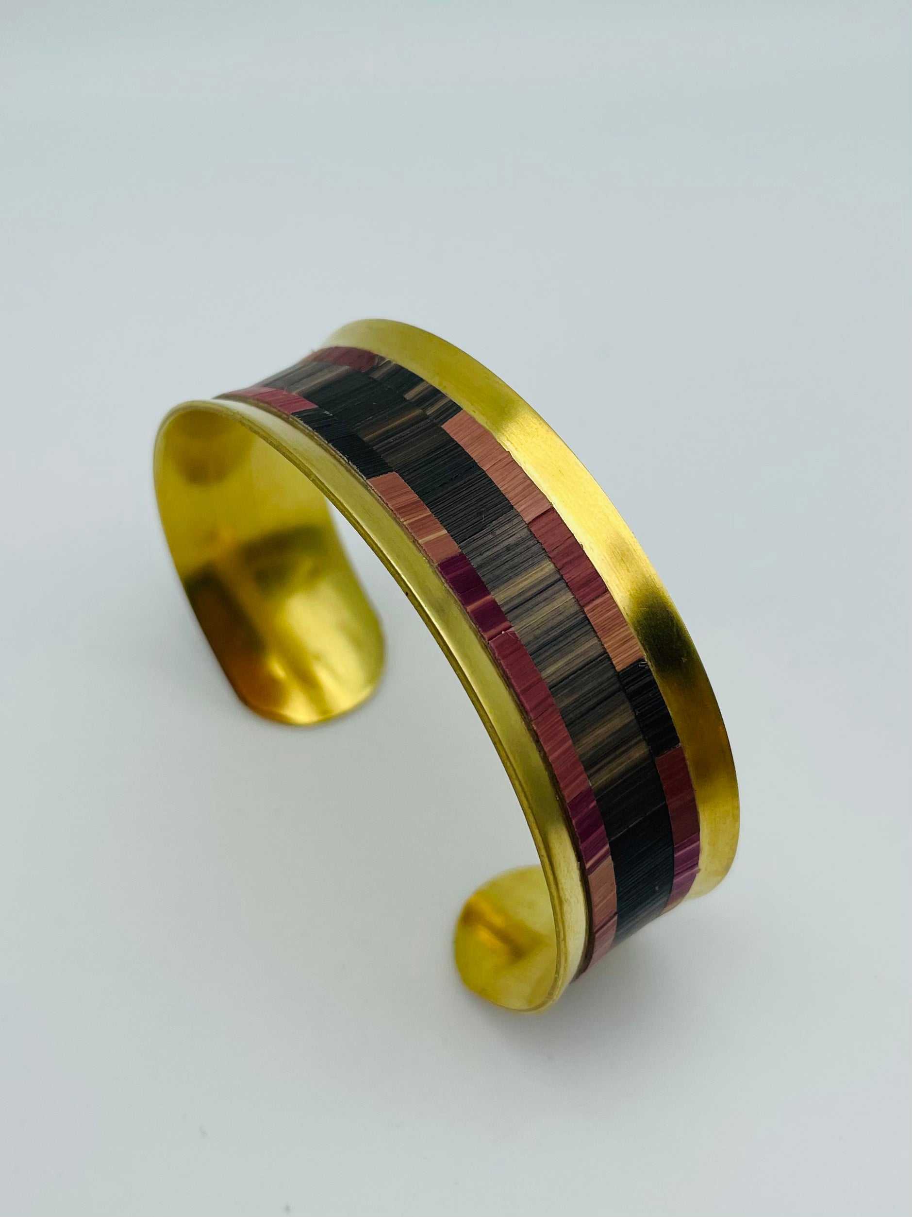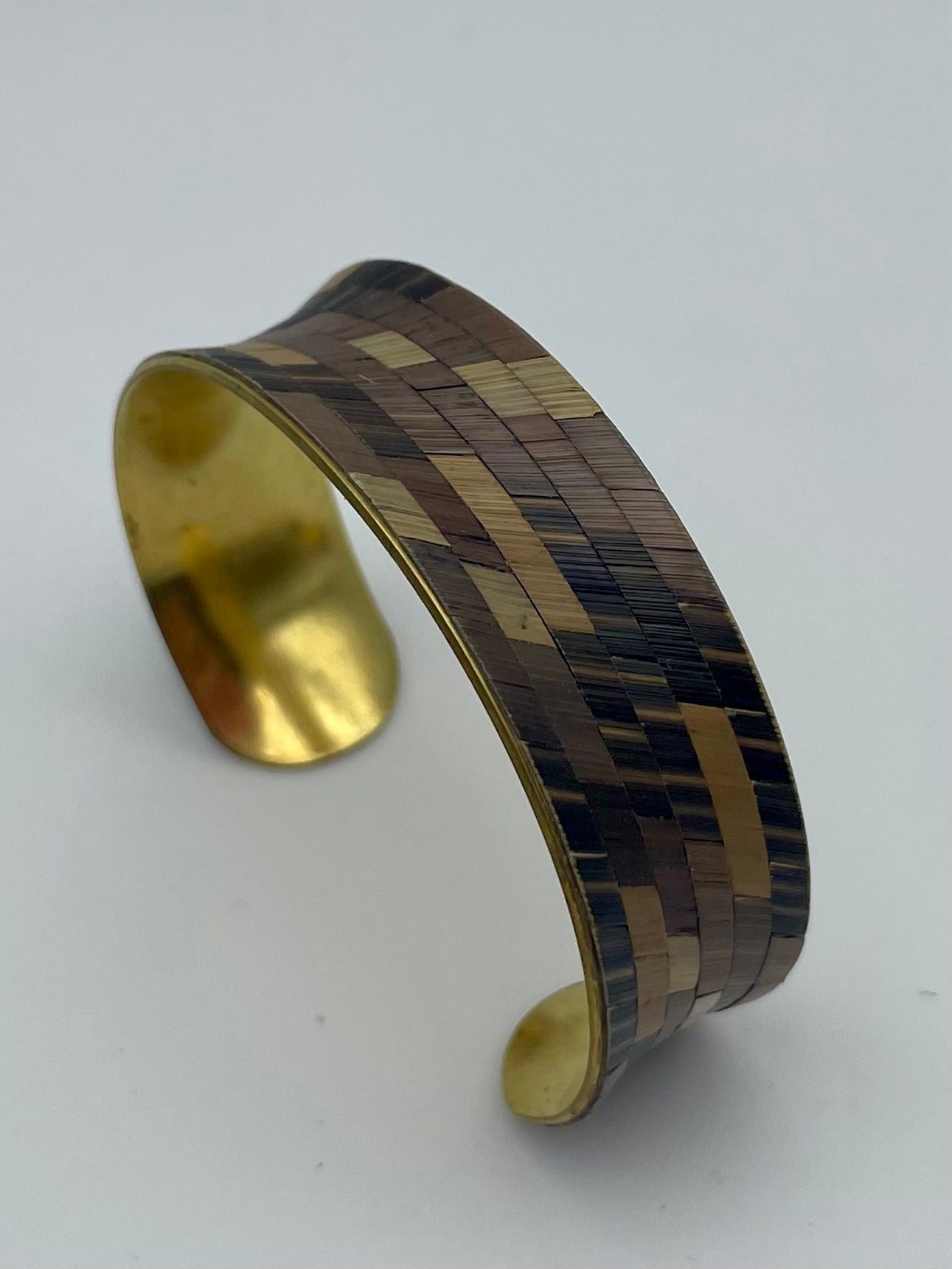 Élégante et intemporelle, cette manchette en laiton brut est sublimée par un délicat travail de marqueterie de paille. Chaque pièce est unique, alliant savoir-faire artisanal et modernité.