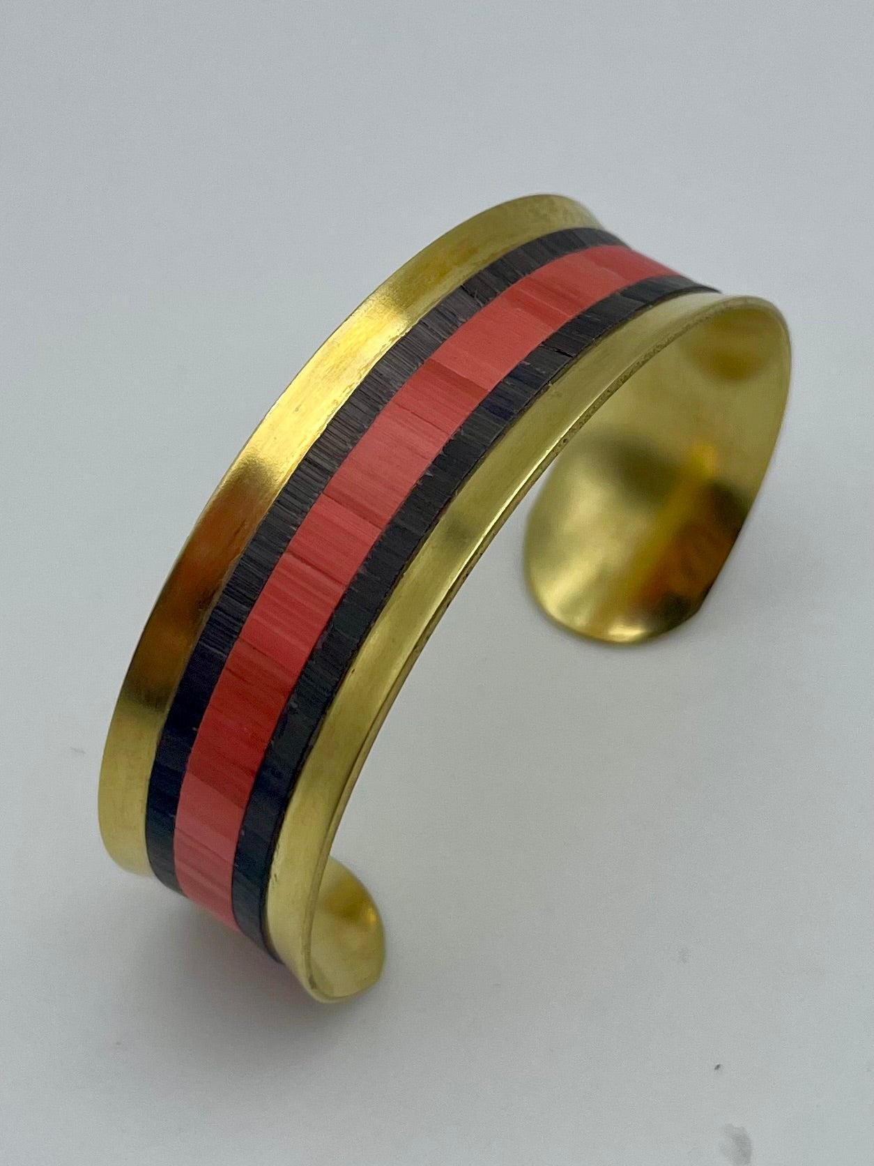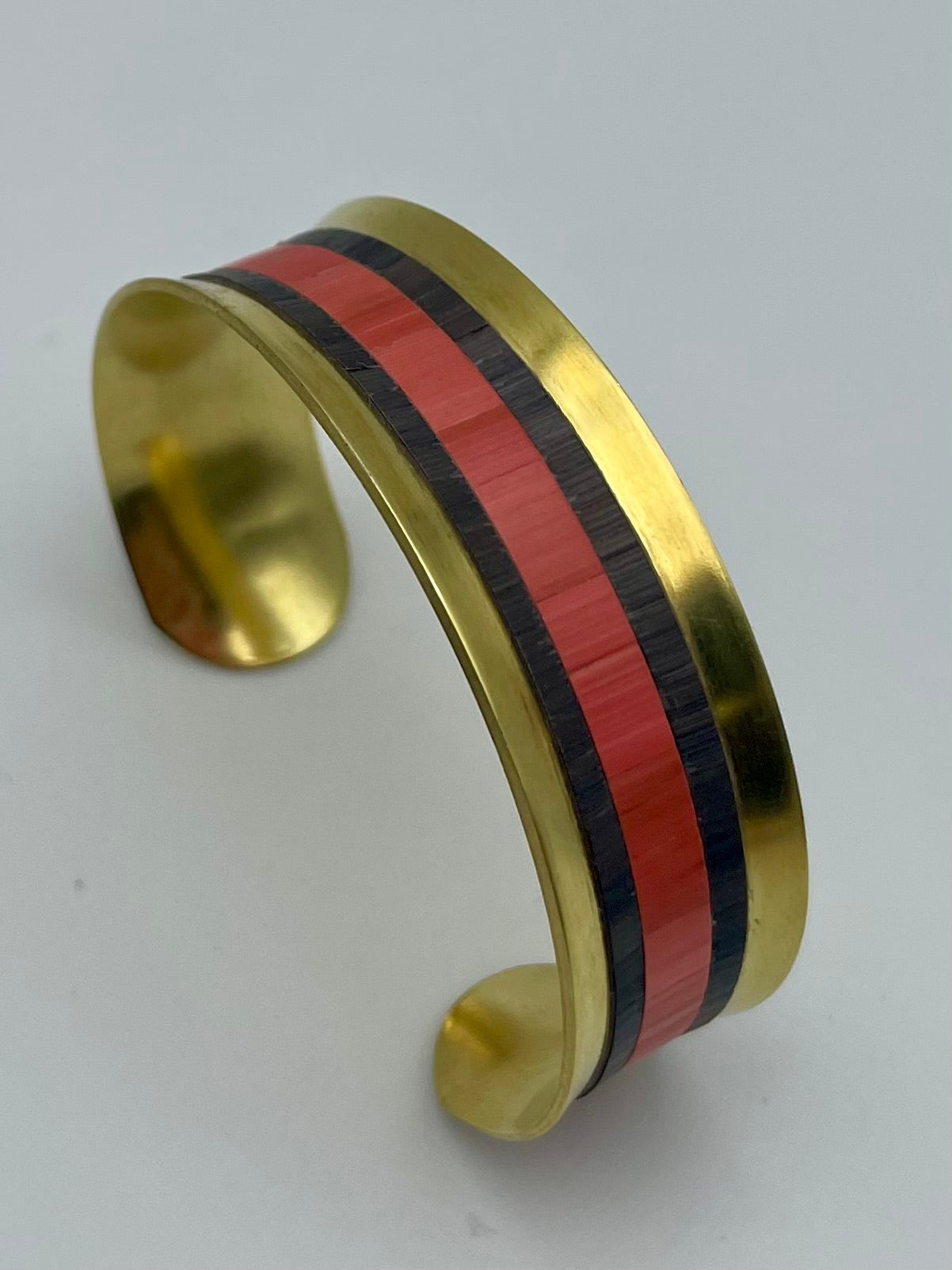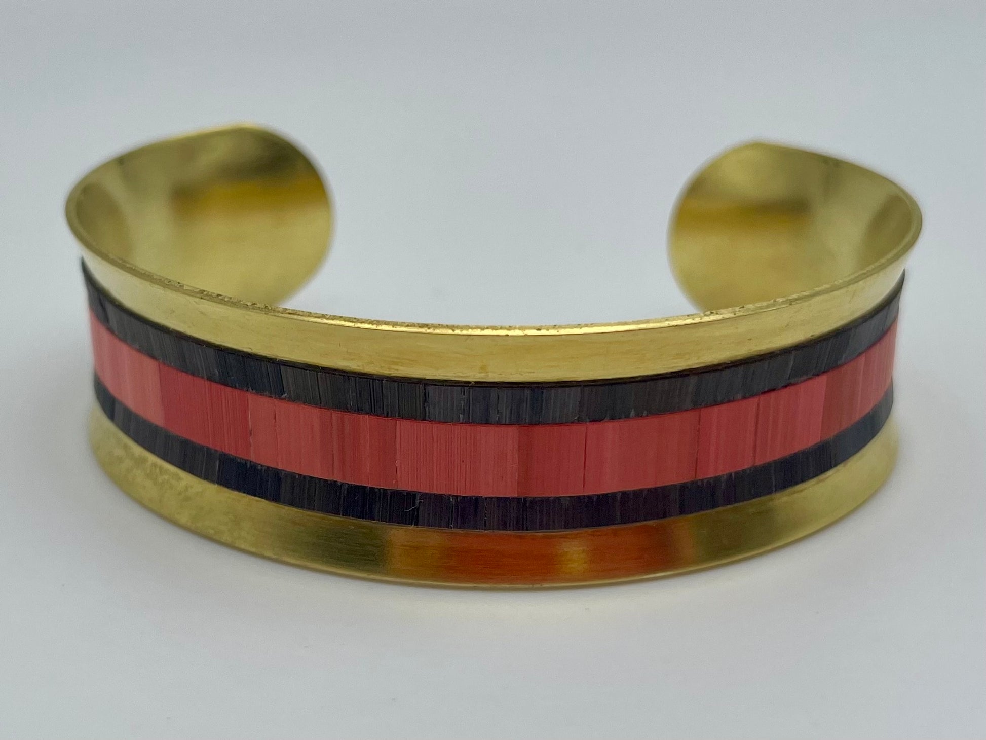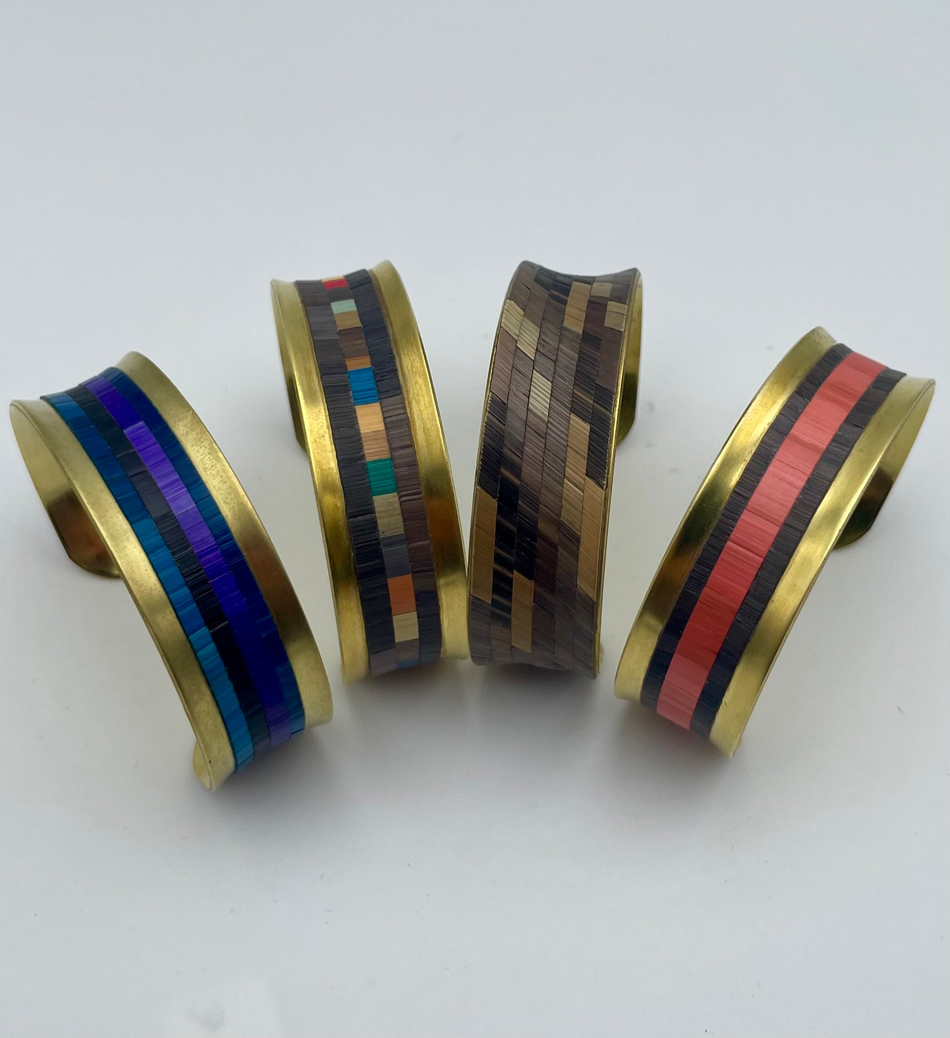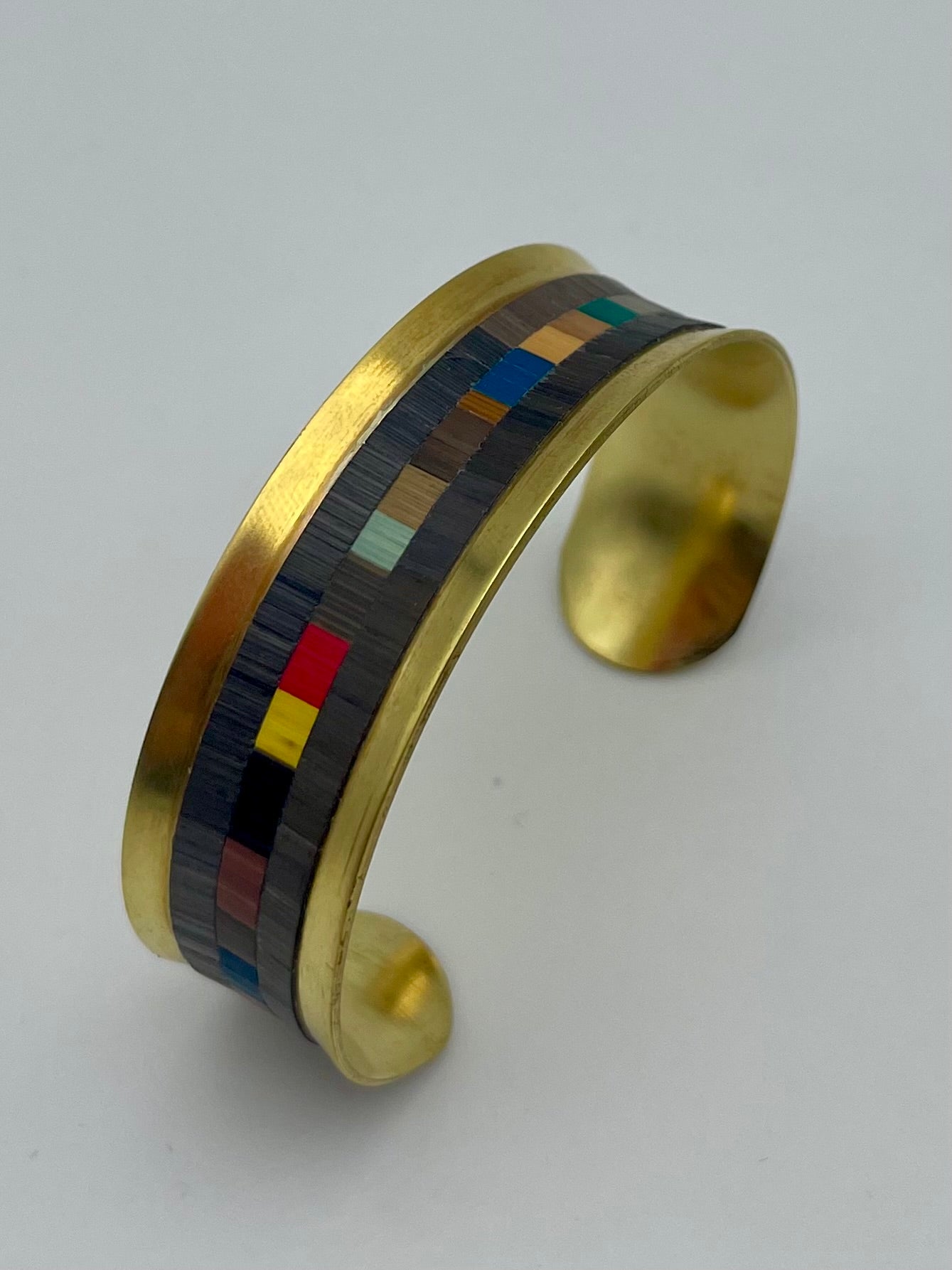 Élégante et intemporelle, cette manchette en laiton brut est sublimée par un délicat travail de marqueterie de paille. Chaque pièce est unique, alliant savoir-faire artisanal et modernité.