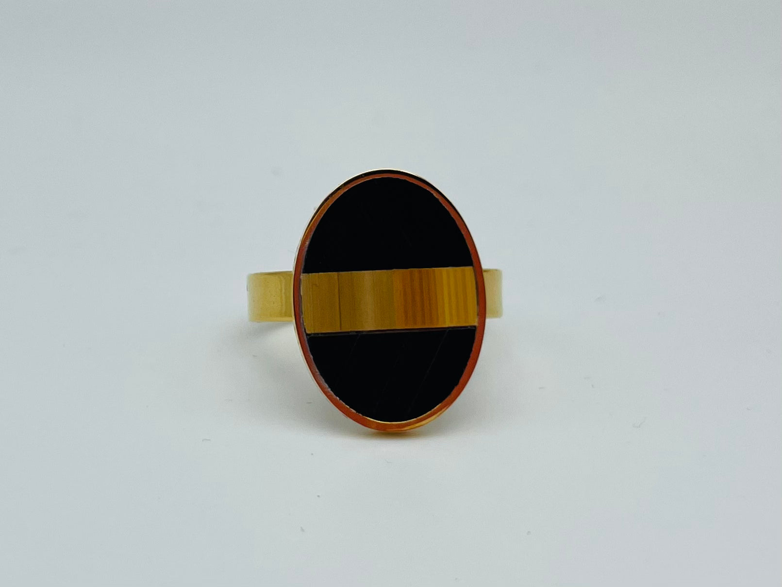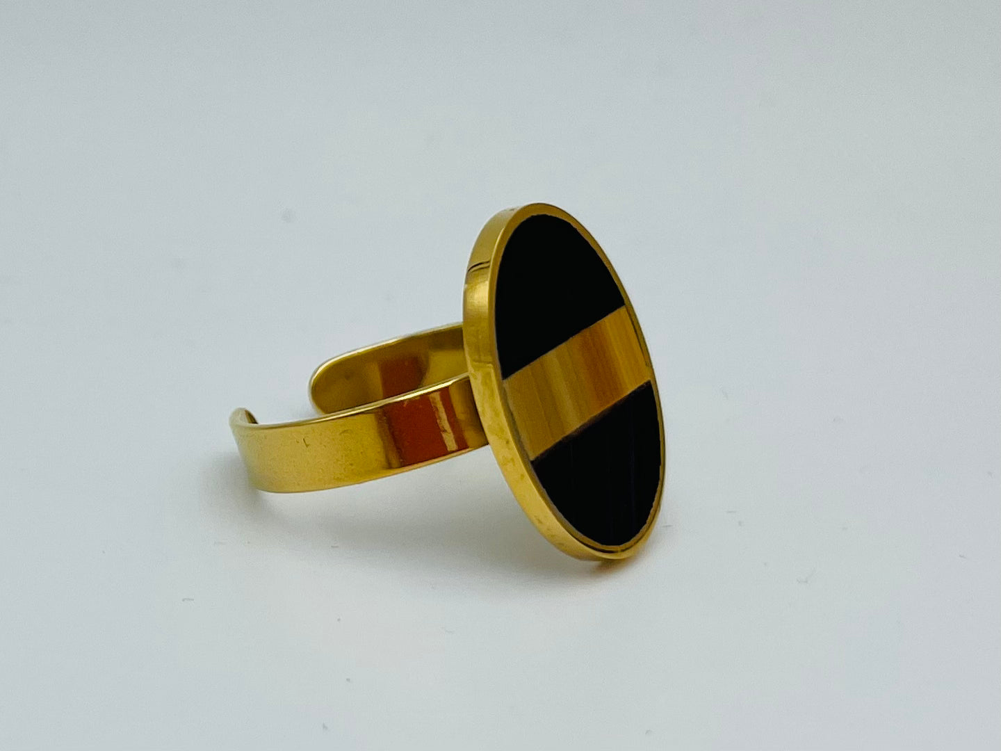 Bague en acier inoxydable 304 doré à l’or fin 24k recouverte de marqueterie de paille