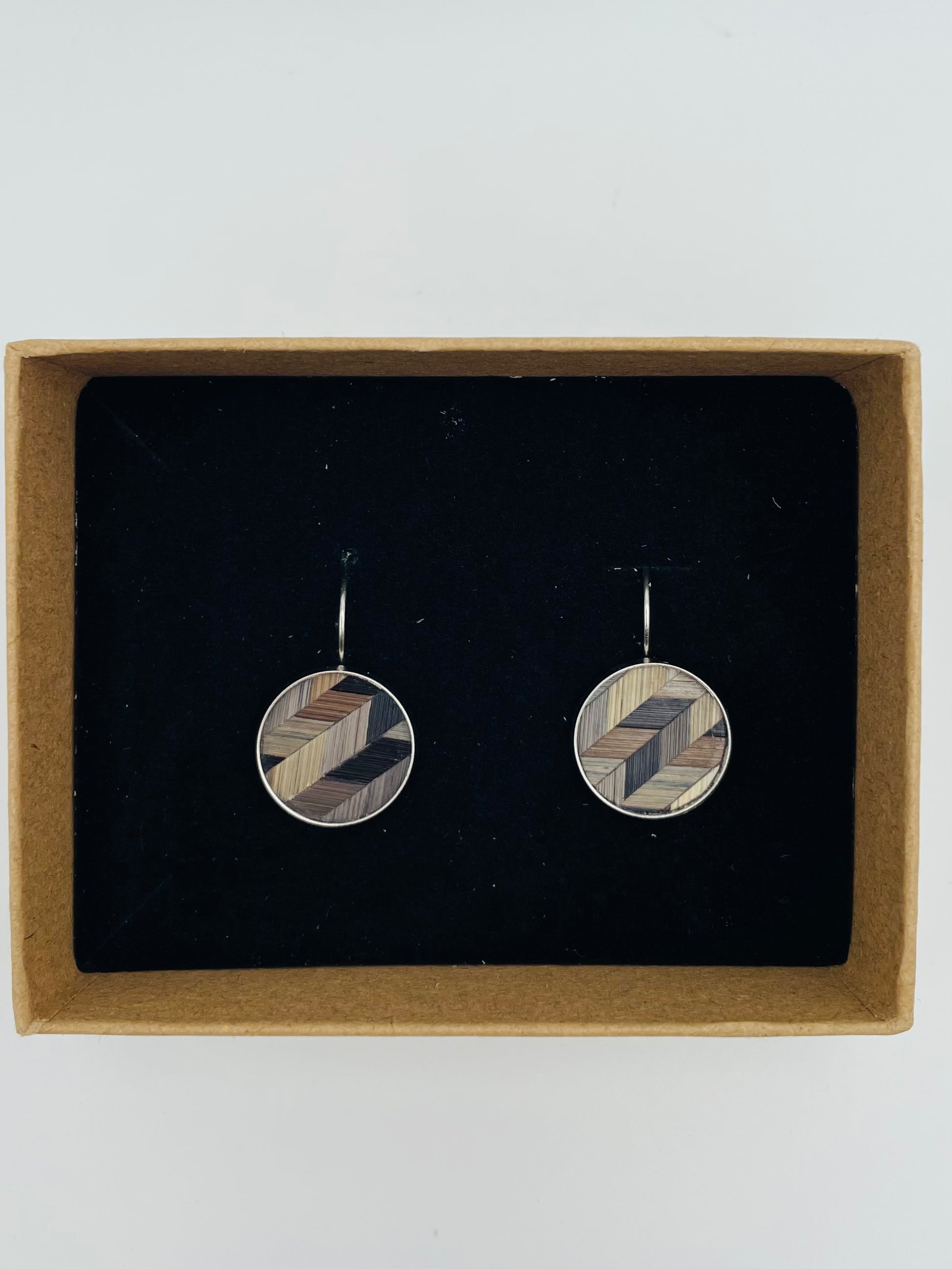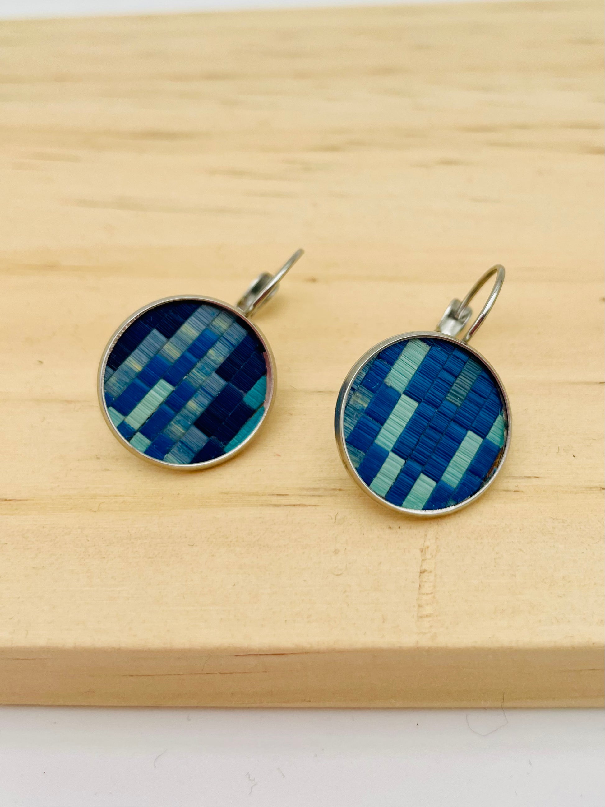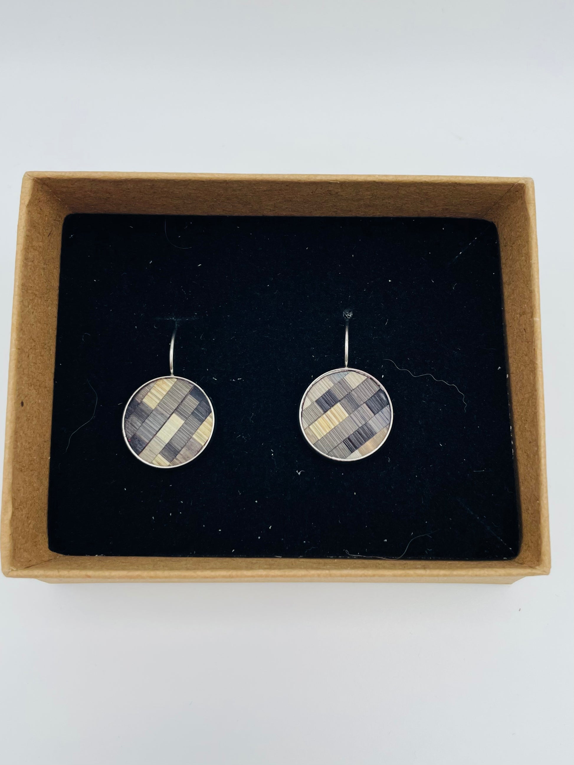 Fabriquée en acier inoxydable et recouverte de marqueterie de paille aux motifs variés.