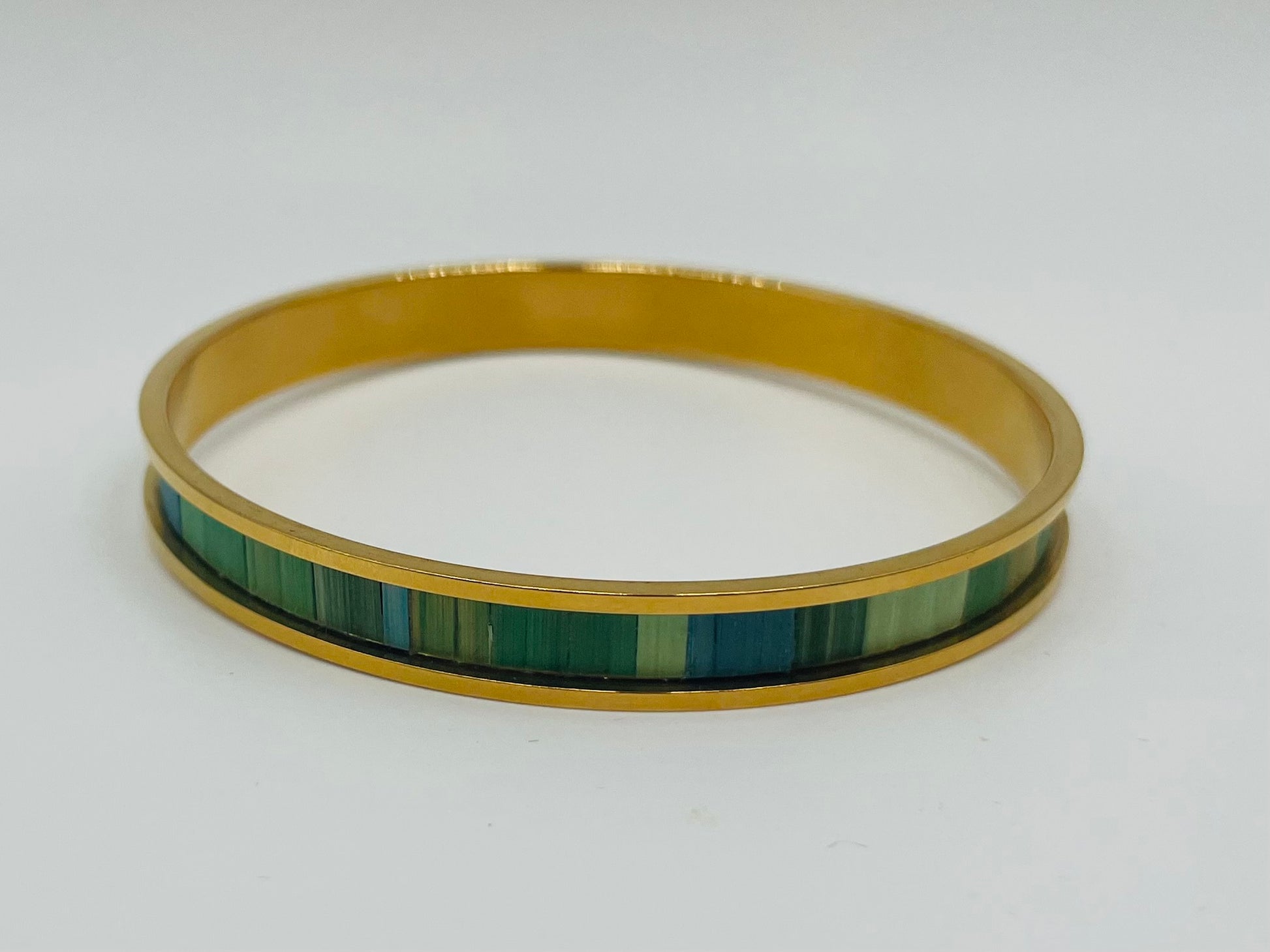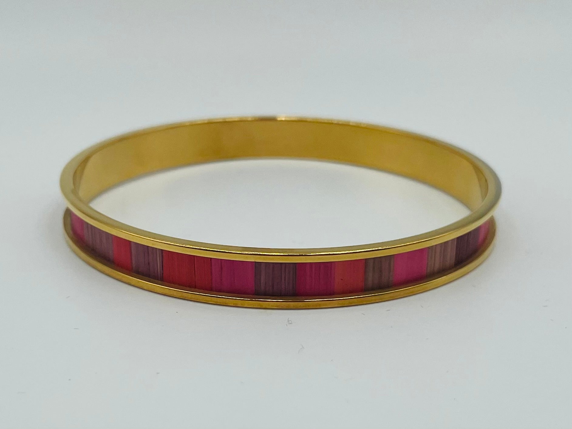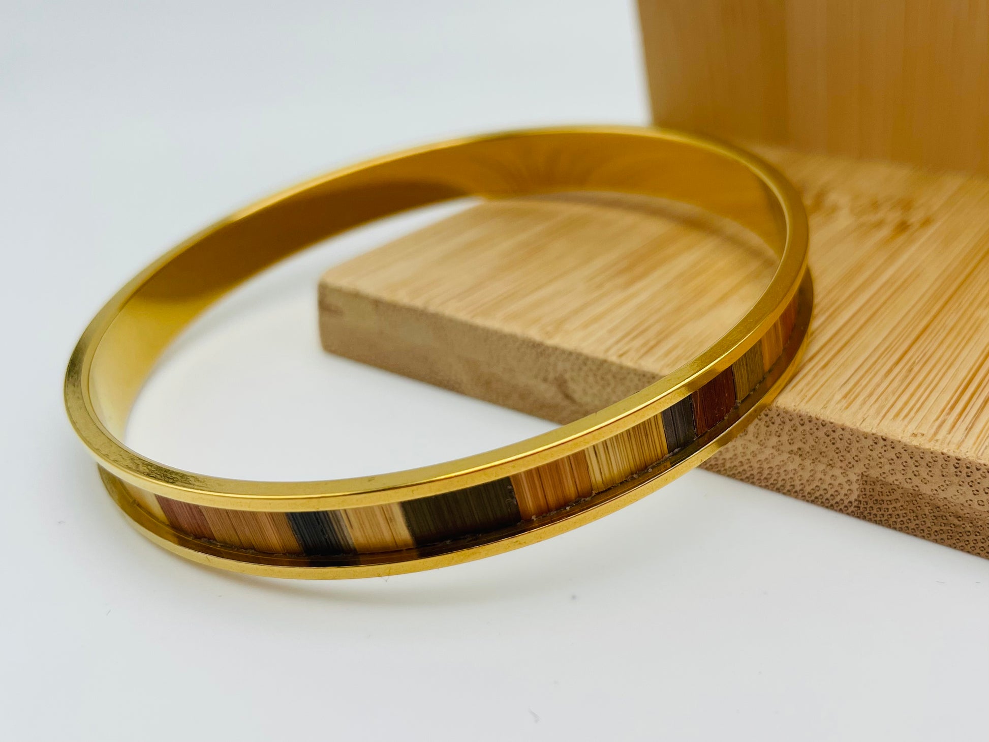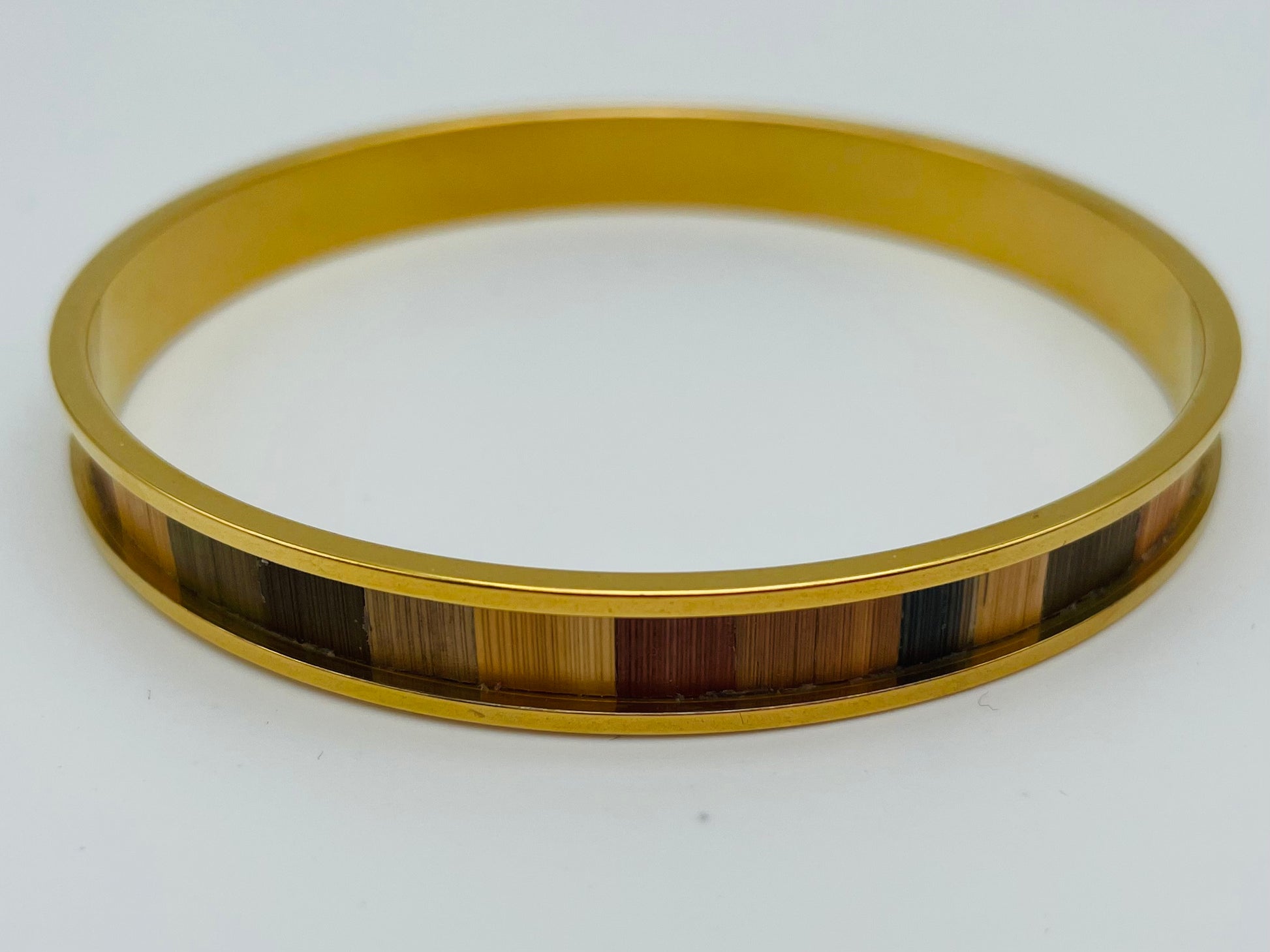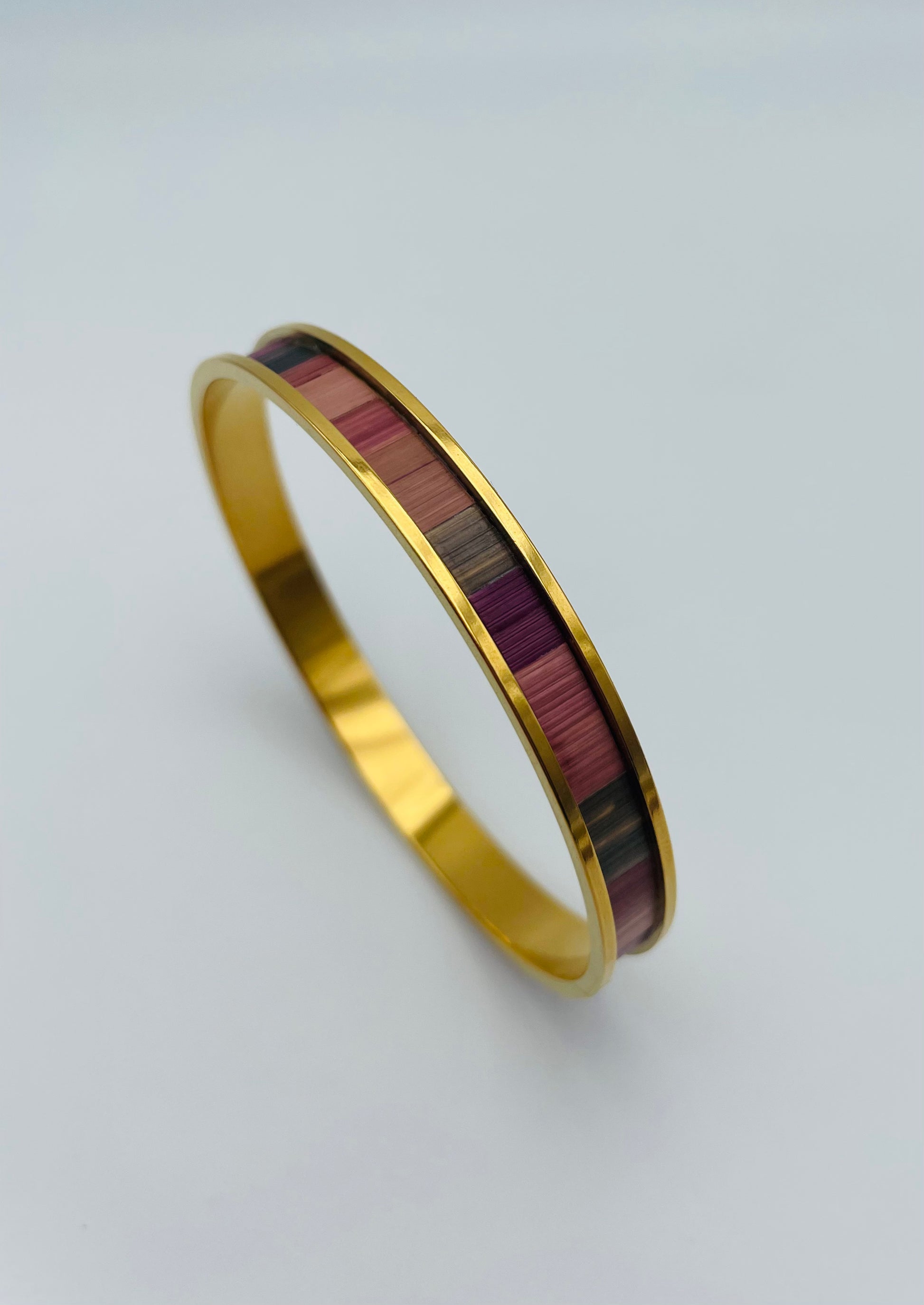 Jonc fin en acier inoxydable doré à l’or fin 24k ou inox ou laiton brut recouvert de marqueterie de paille