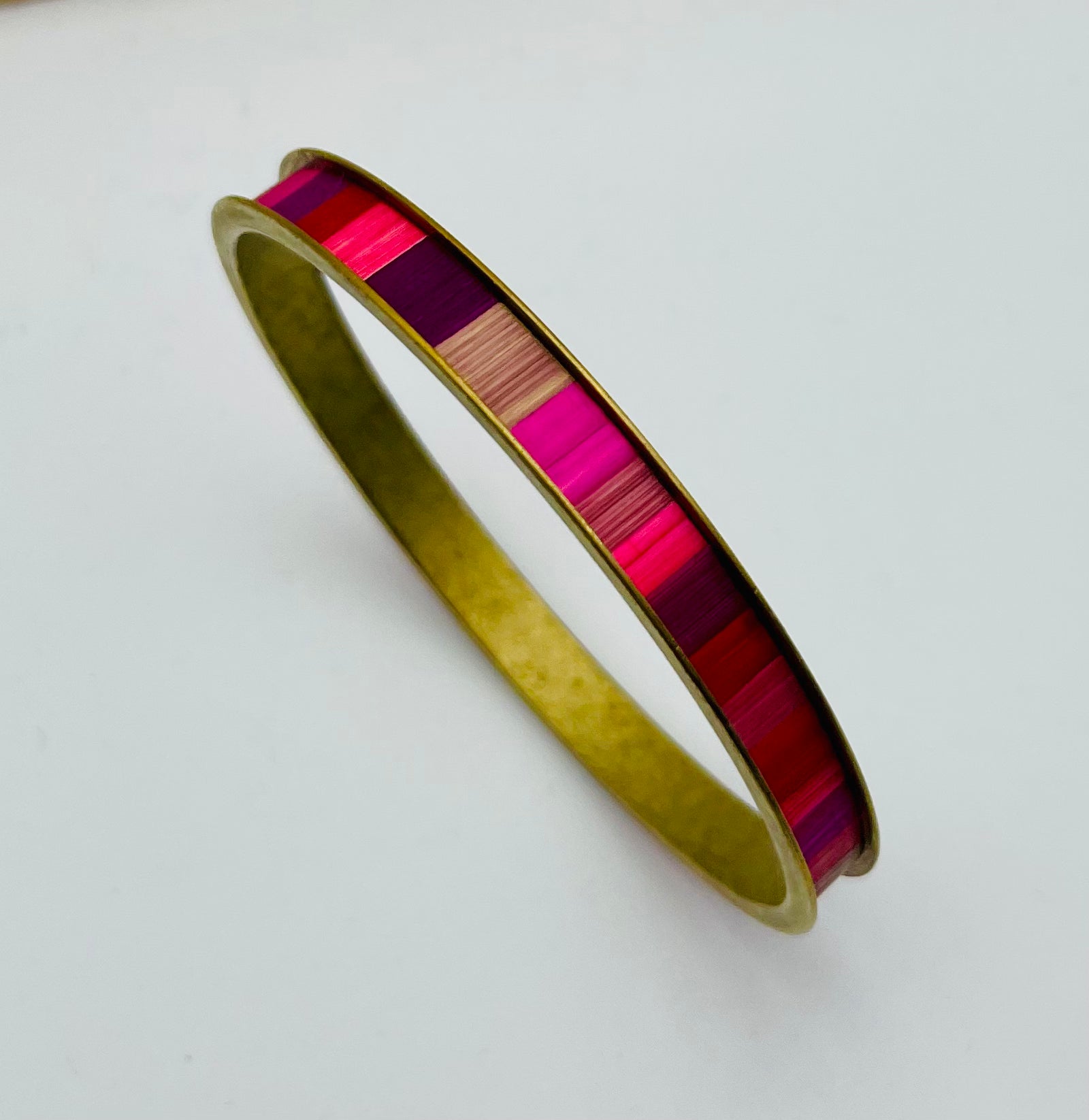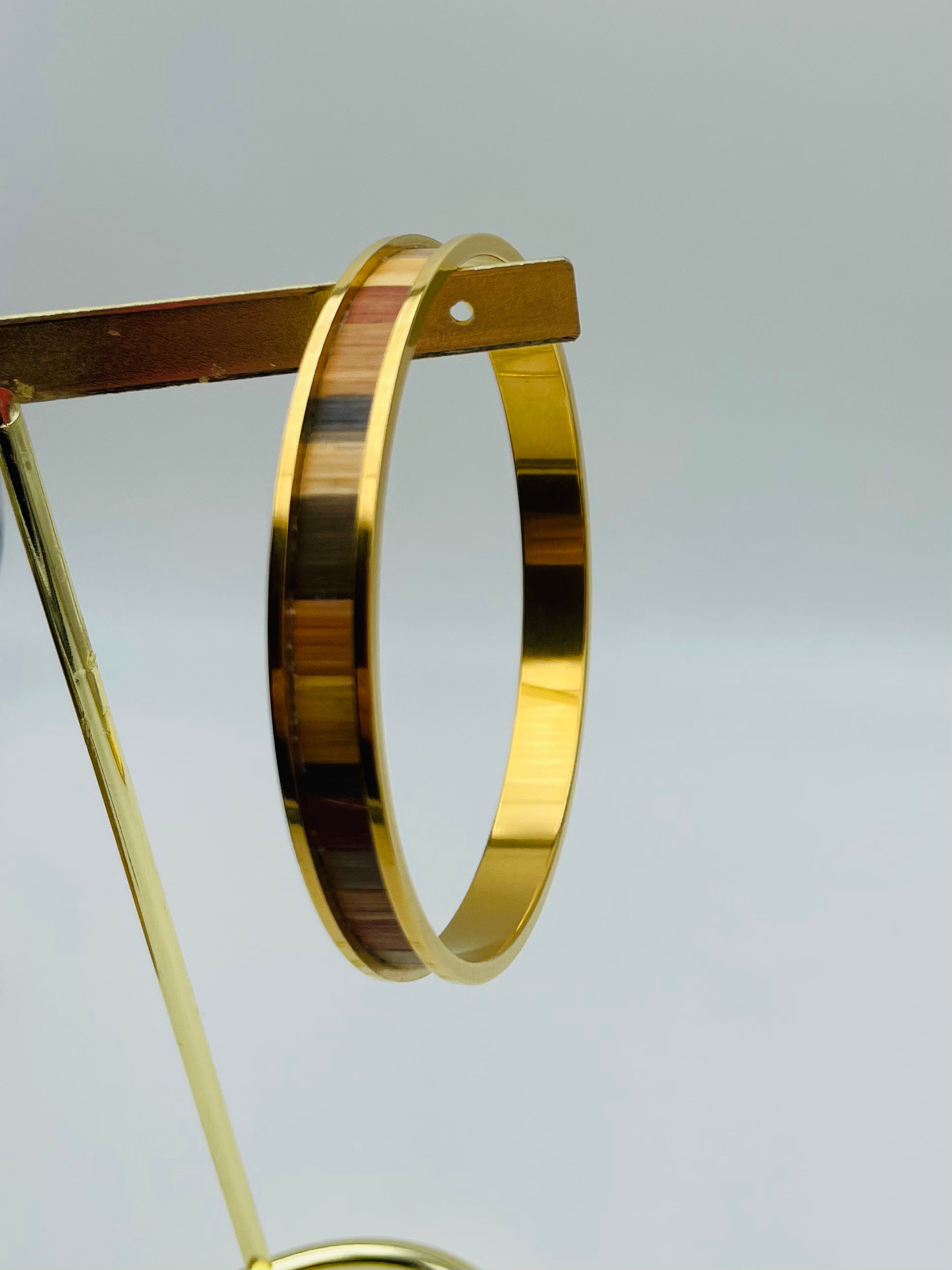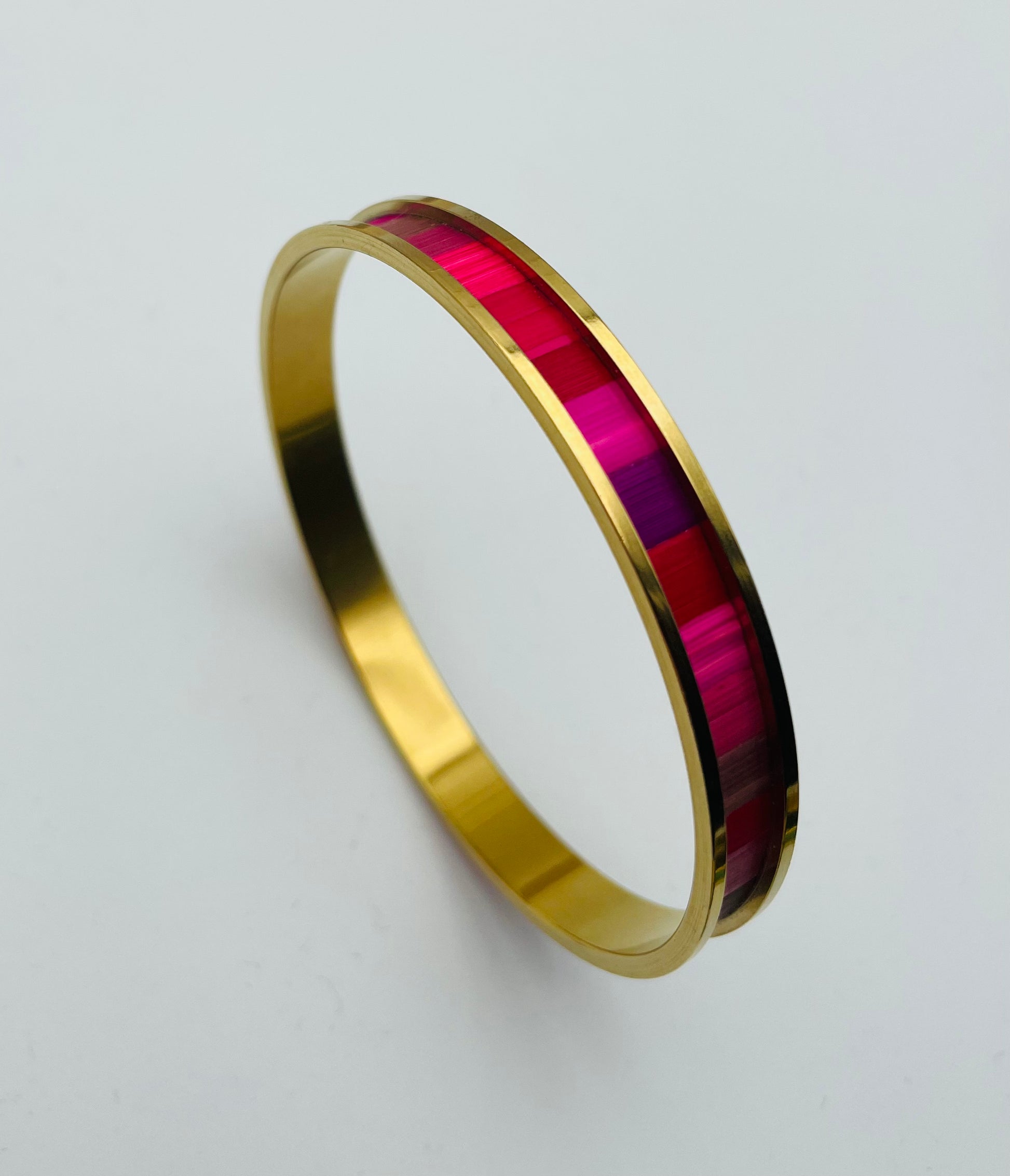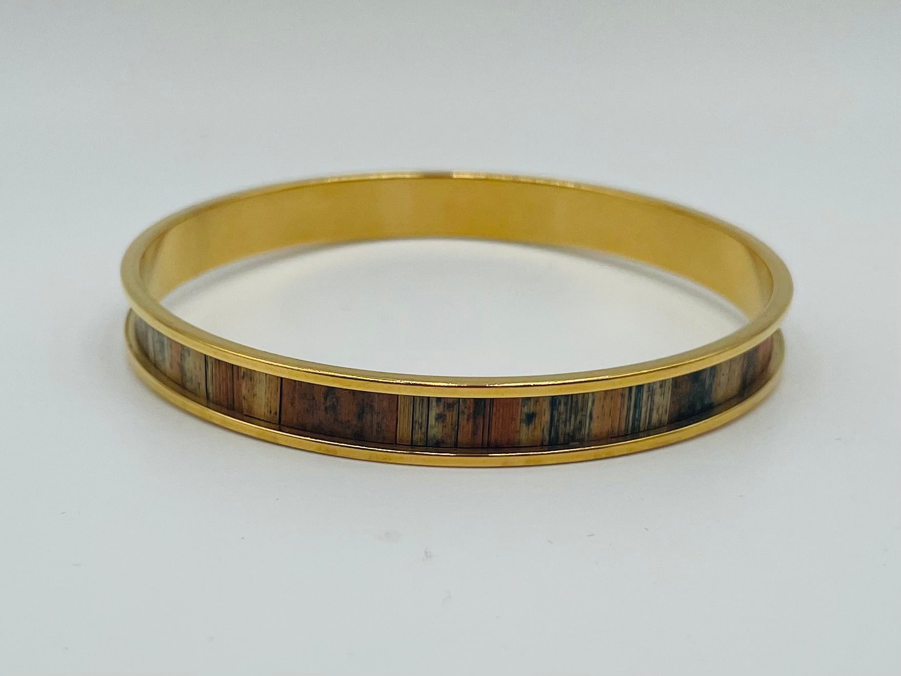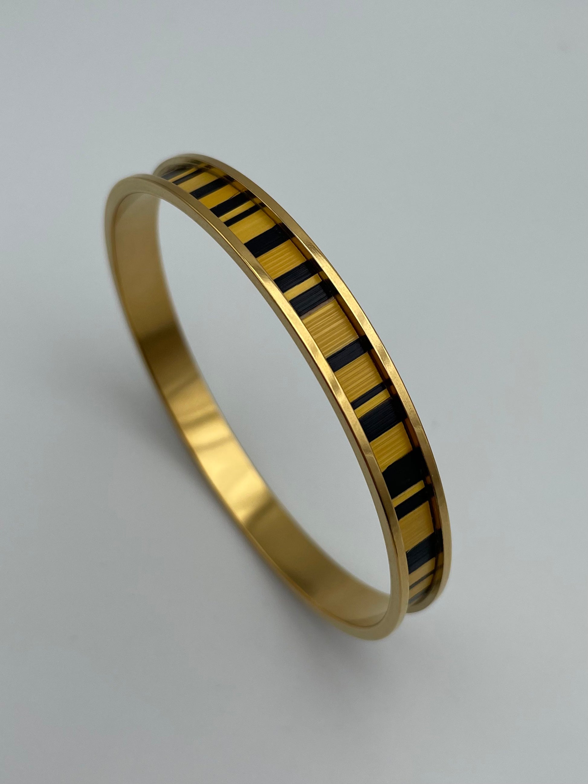 Jonc fin en acier inoxydable doré à l’or fin 24k ou inox ou laiton brut recouvert de marqueterie de paille