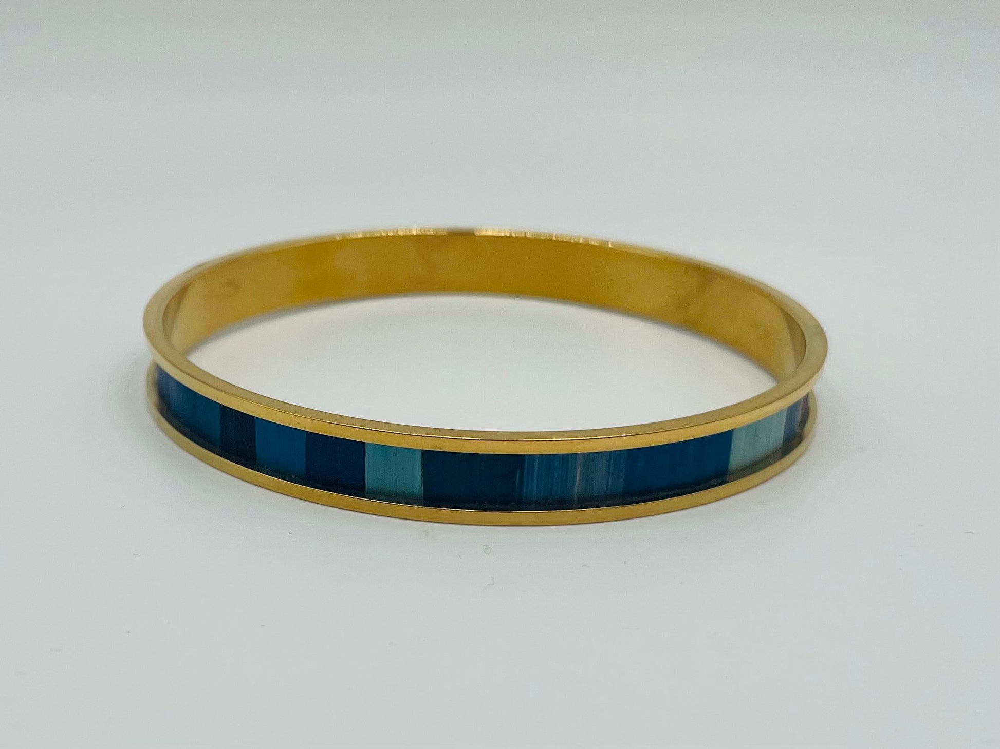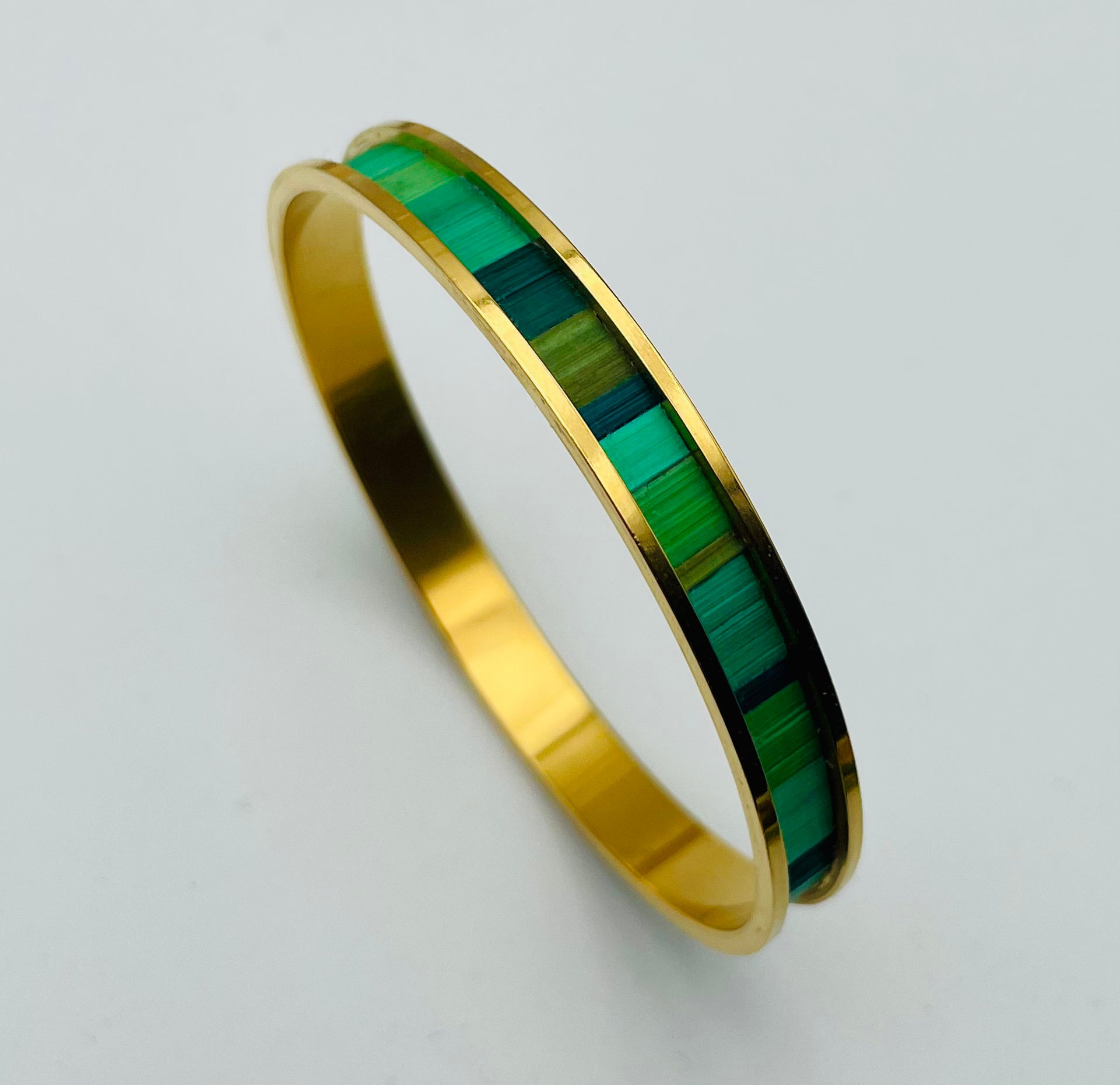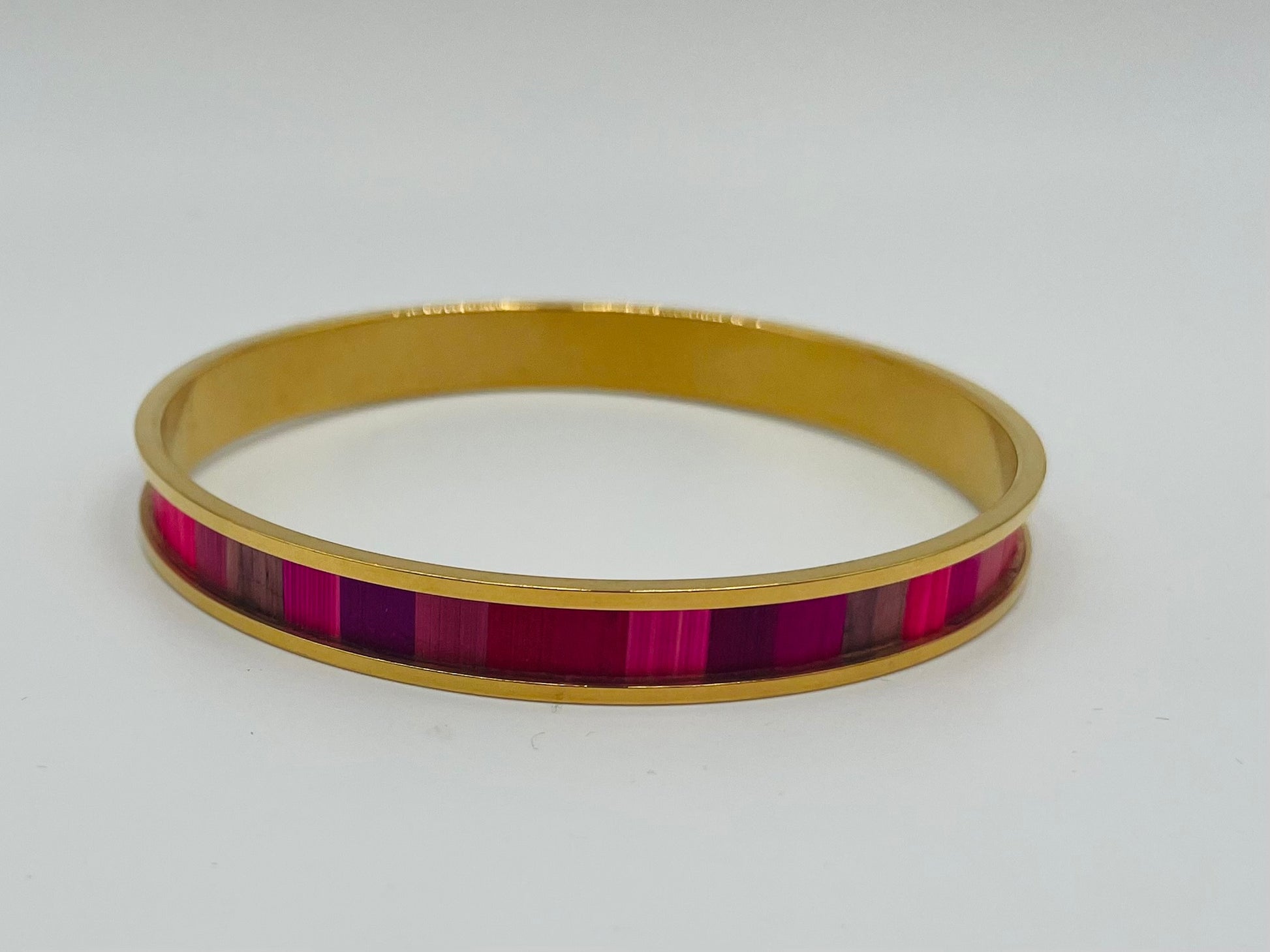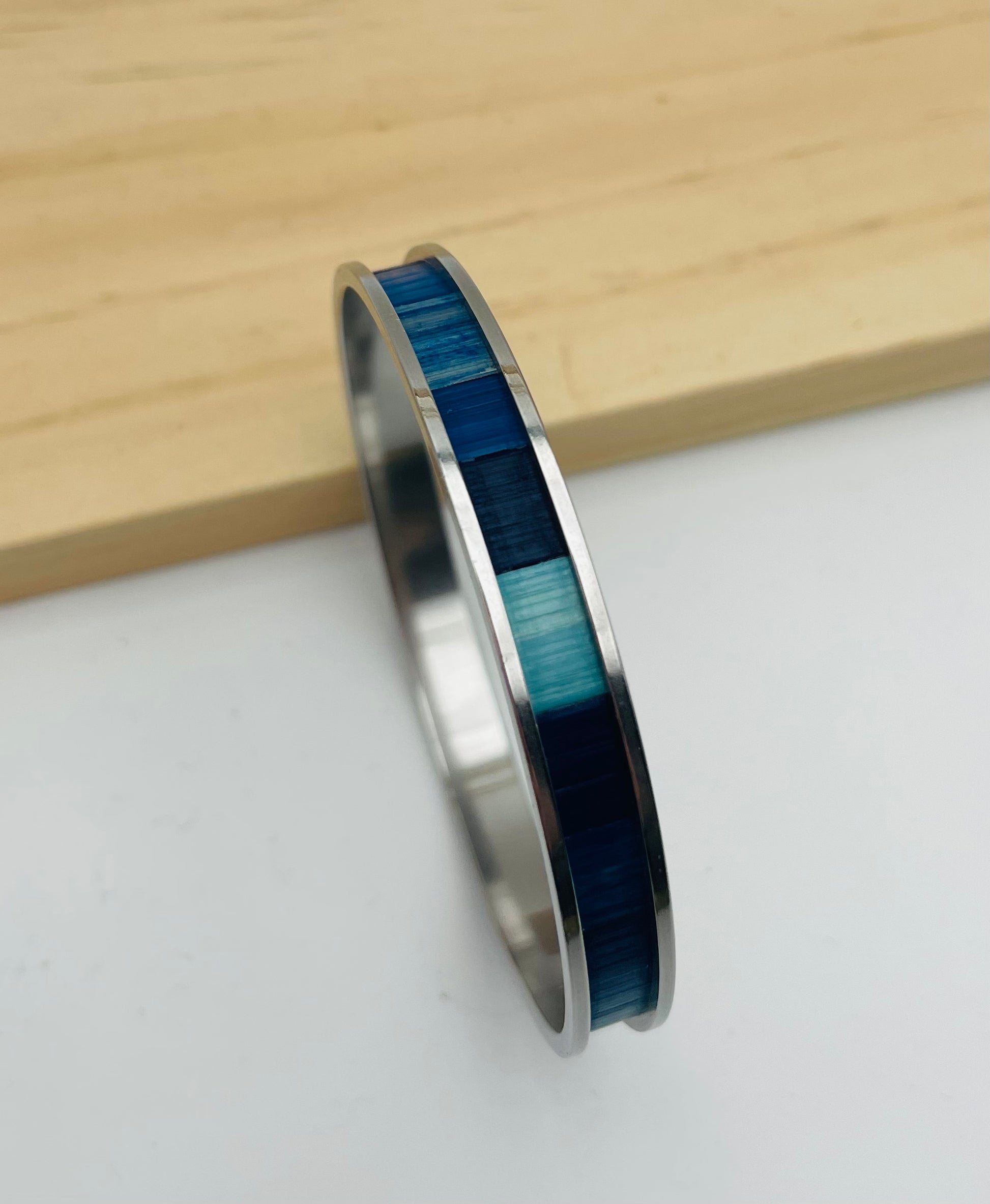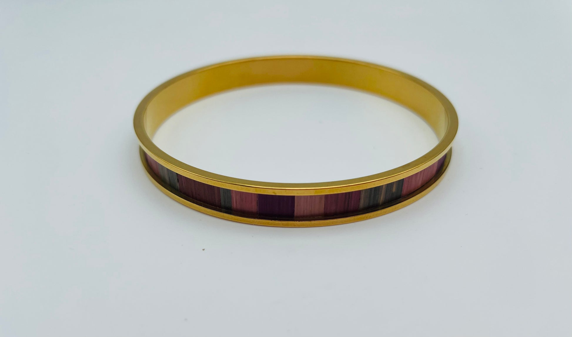Jonc fin en acier inoxydable doré à l’or fin 24k ou inox ou laiton brut recouvert de marqueterie de paille
