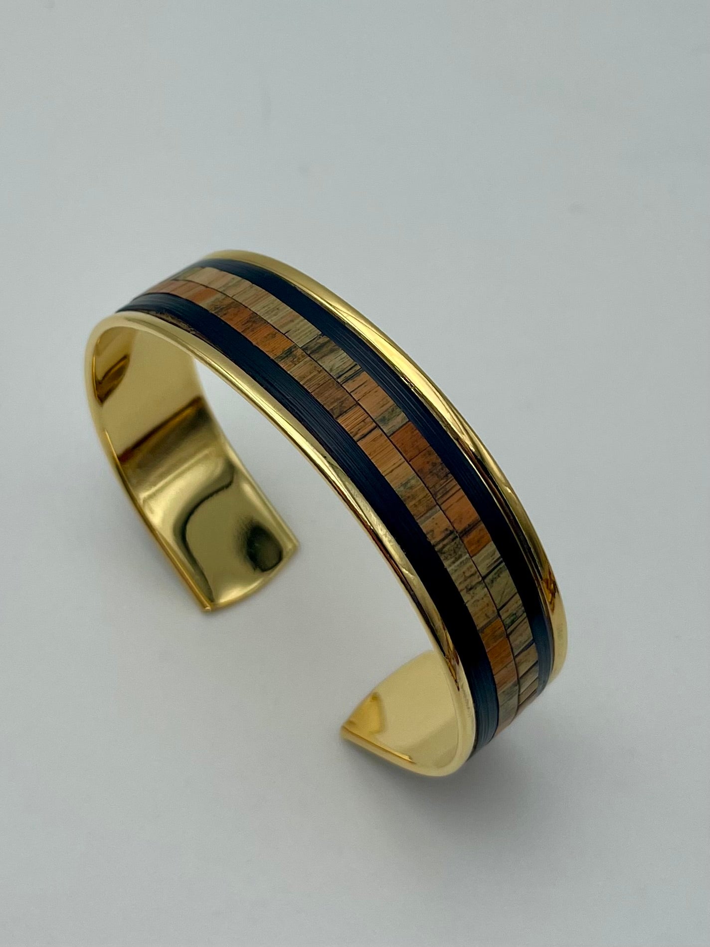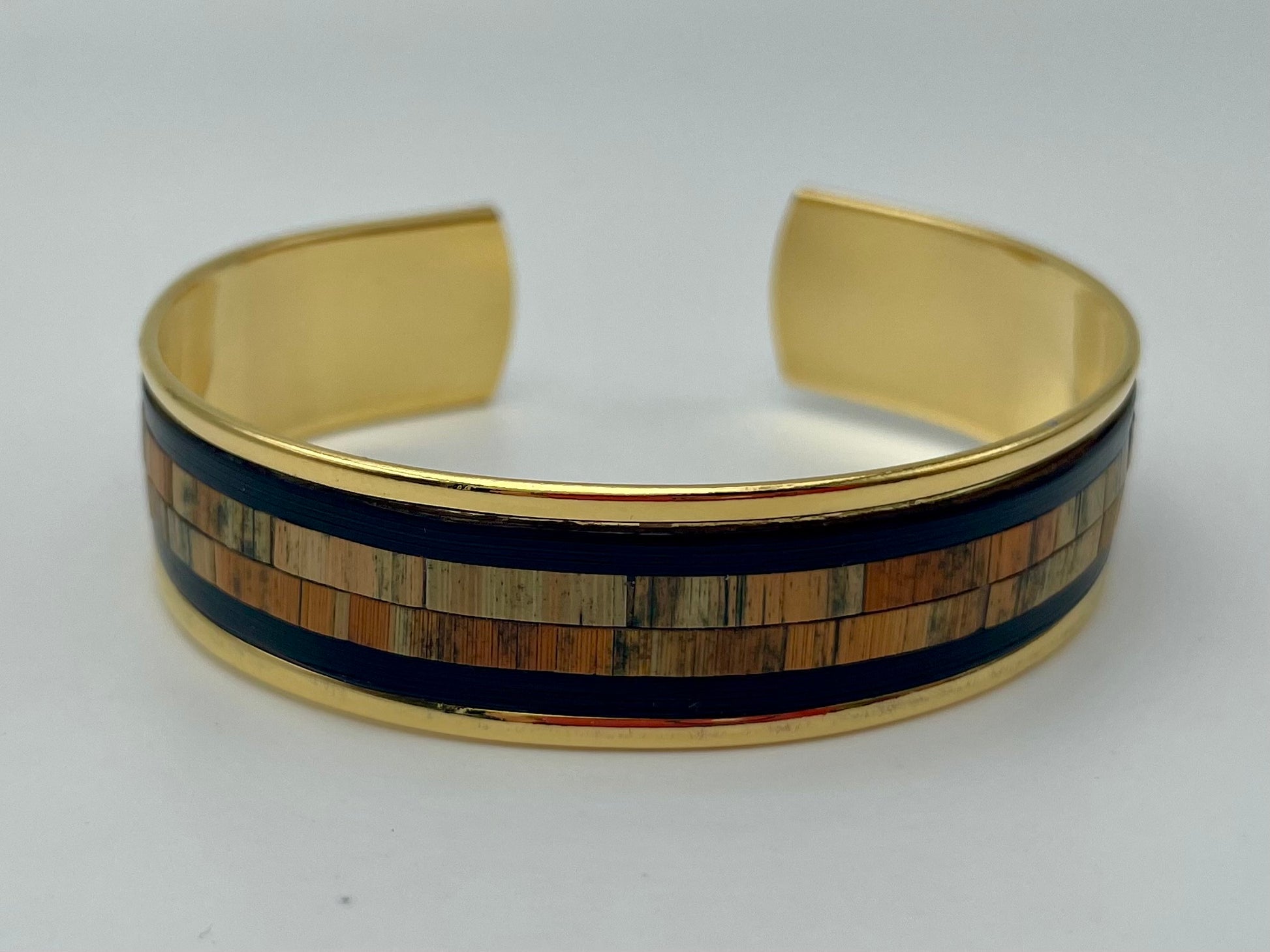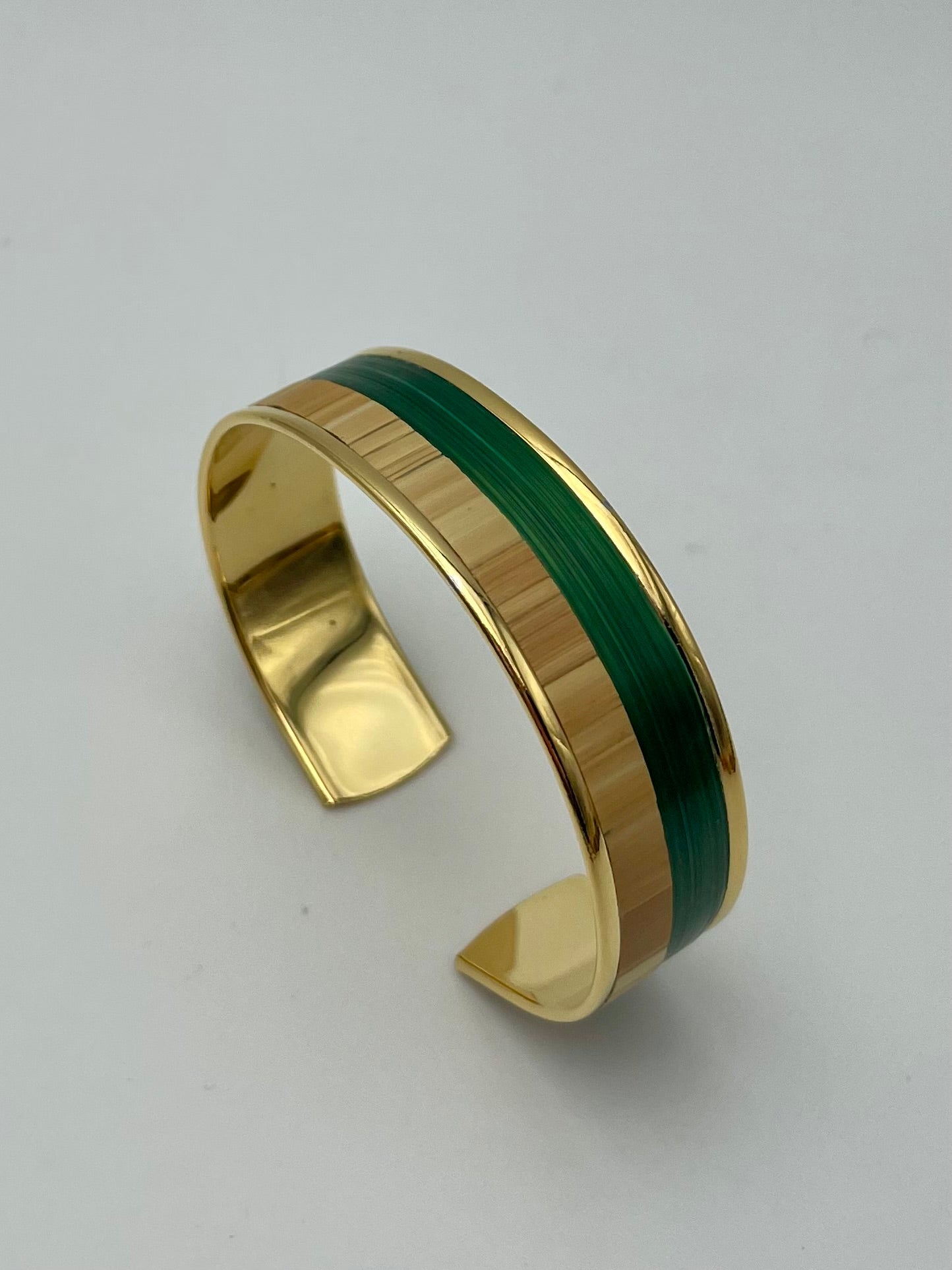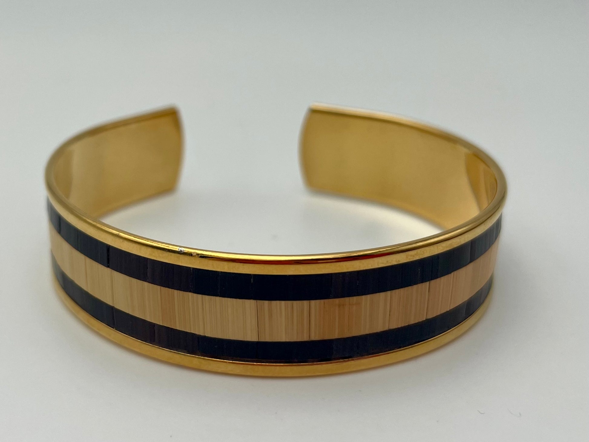 Chaque manchette ou jonc est recouvert à la main de véritables brins de paille de seigle, polis, découpés et posés un à un pour créer un éclat subtil, presque velouté. Ici, point d’excès : la paille révèle sa brillance satinée avec une élégance silencieuse, affirmée mais jamais ostentatoire.