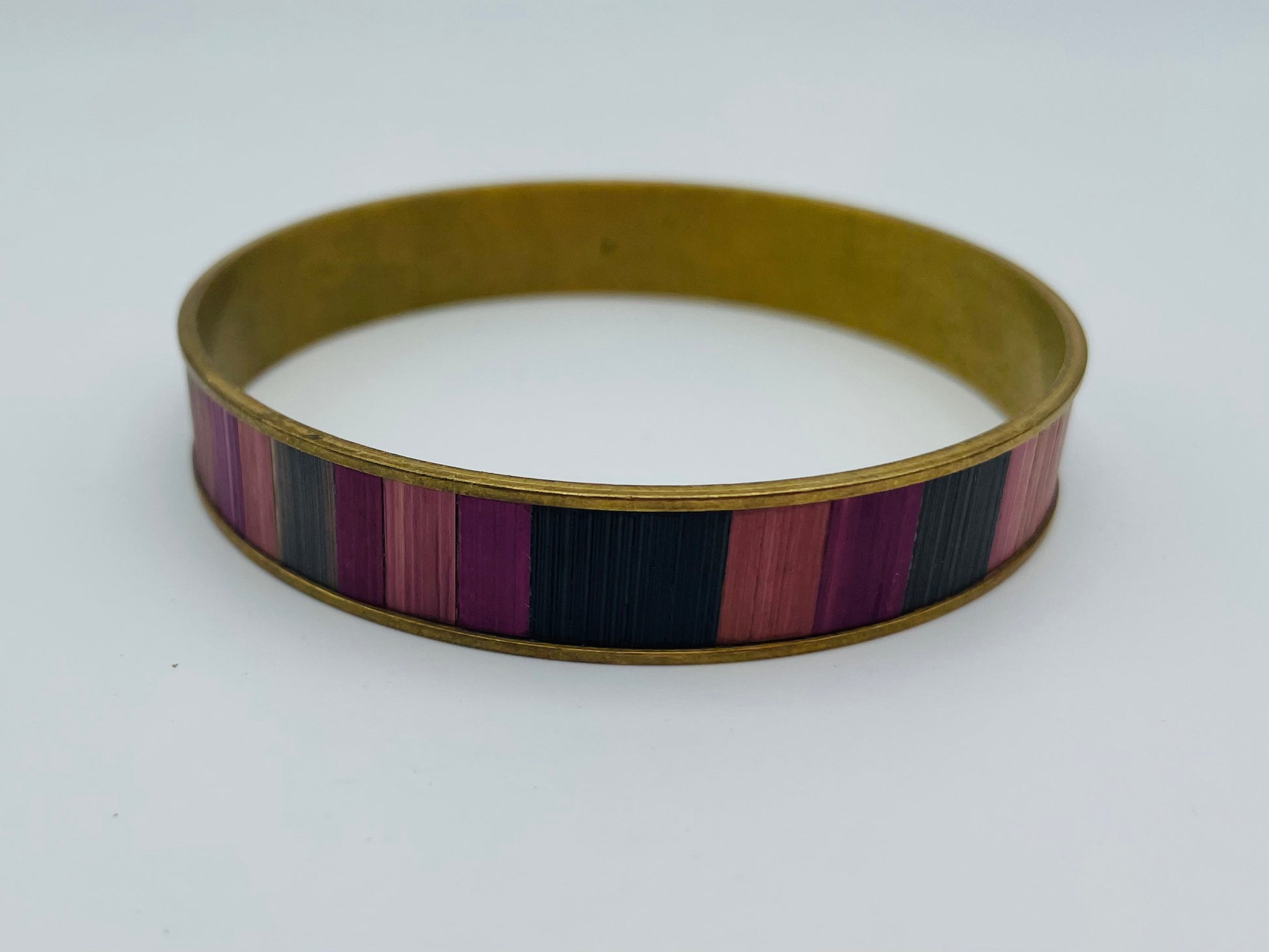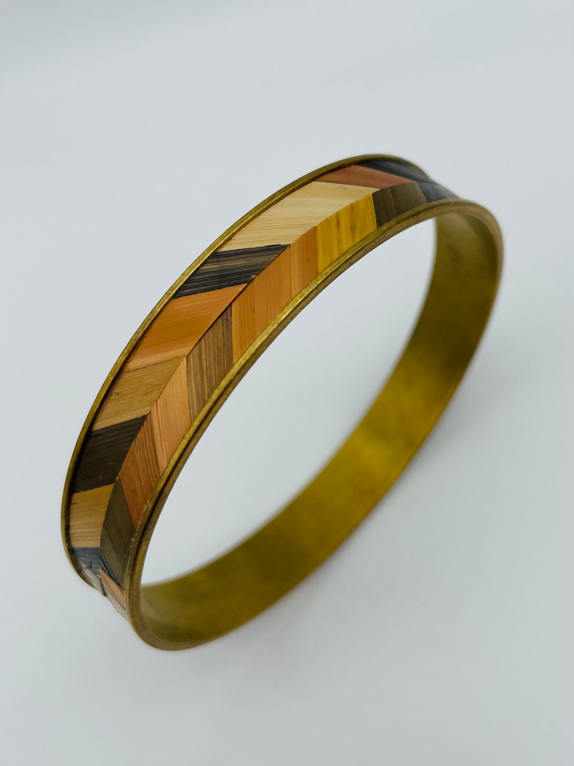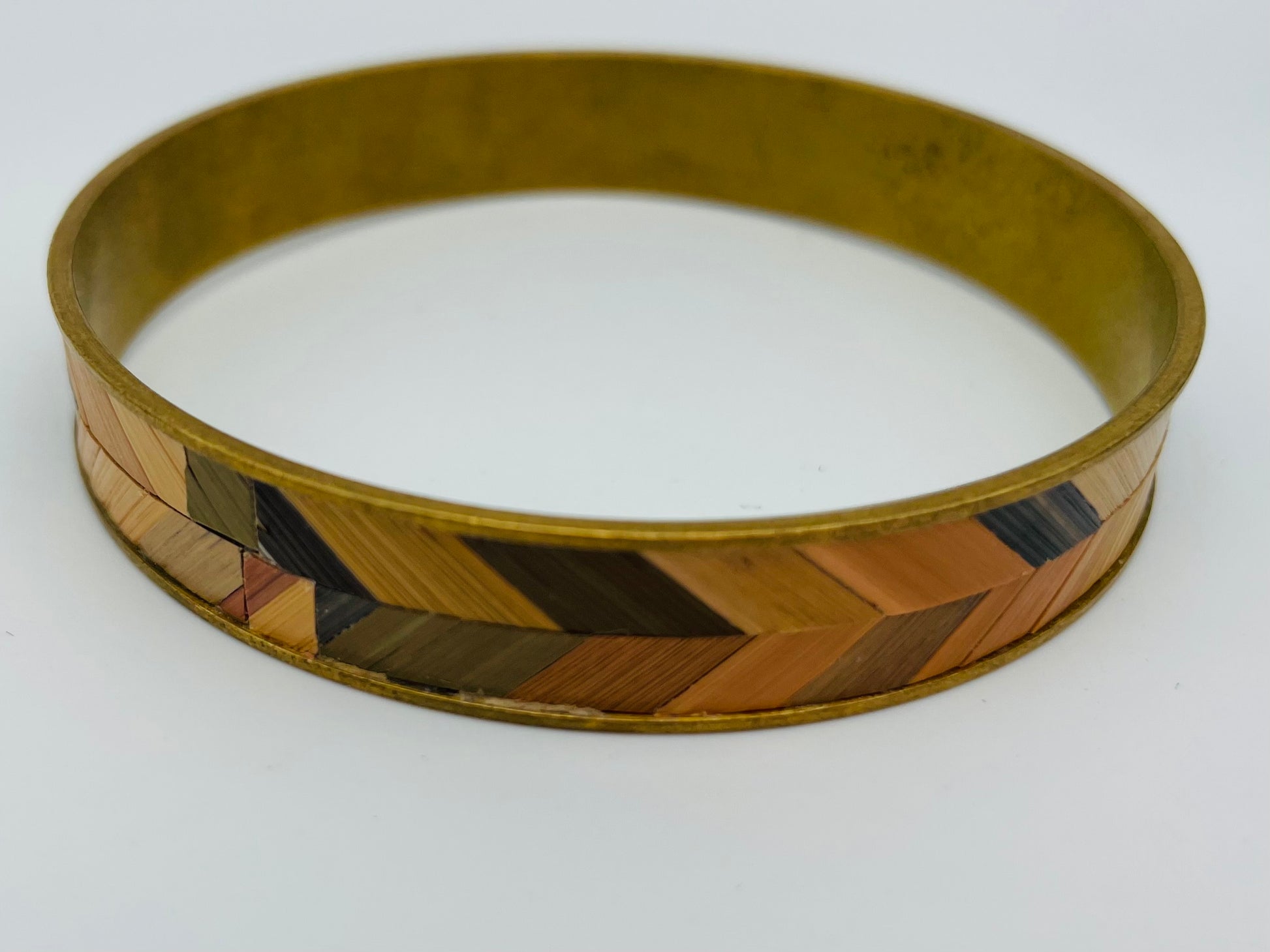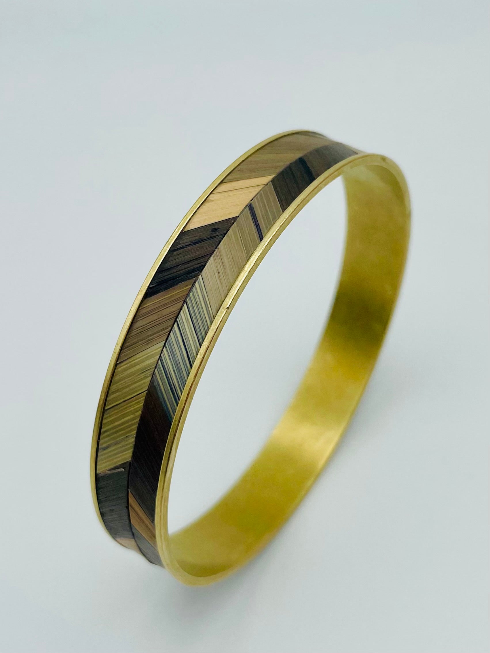 Jonc en laiton brut de taille moyenne recouvert de marqueterie de paille