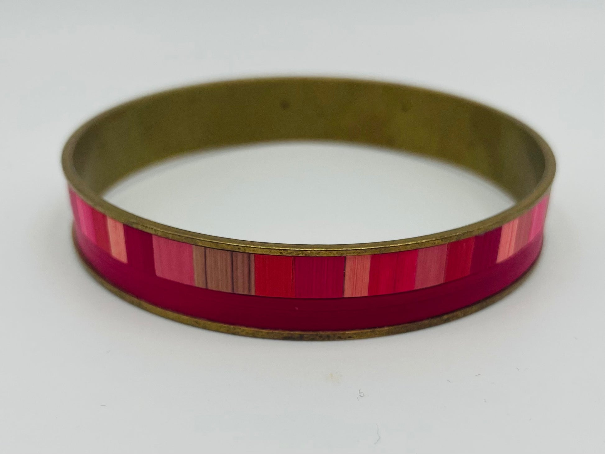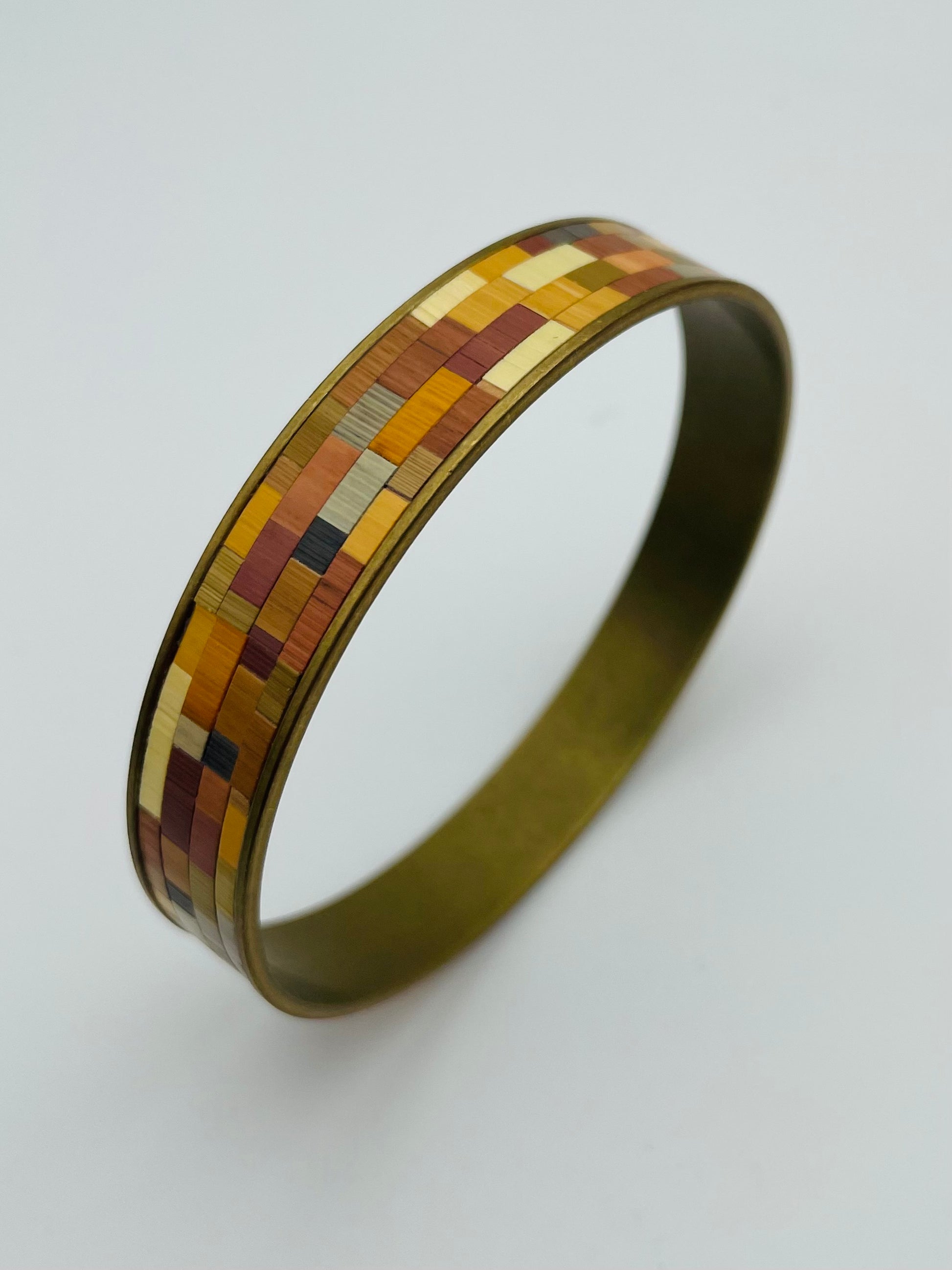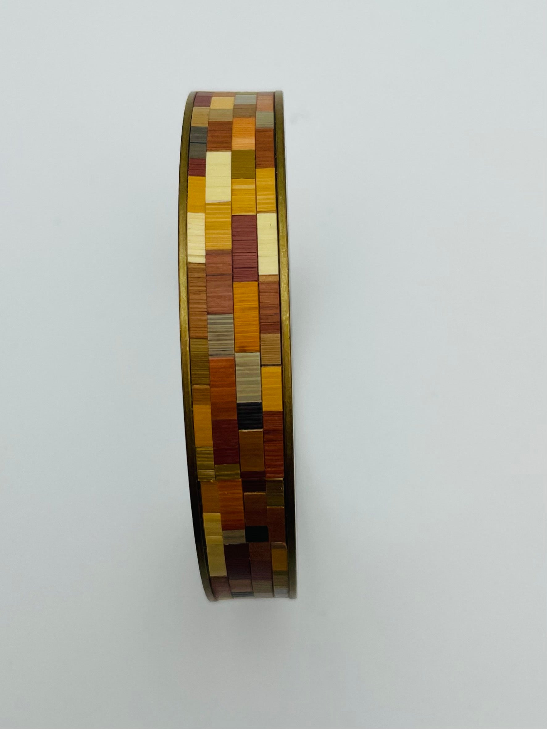 Jonc en laiton brut de taille moyenne recouvert de marqueterie de paille