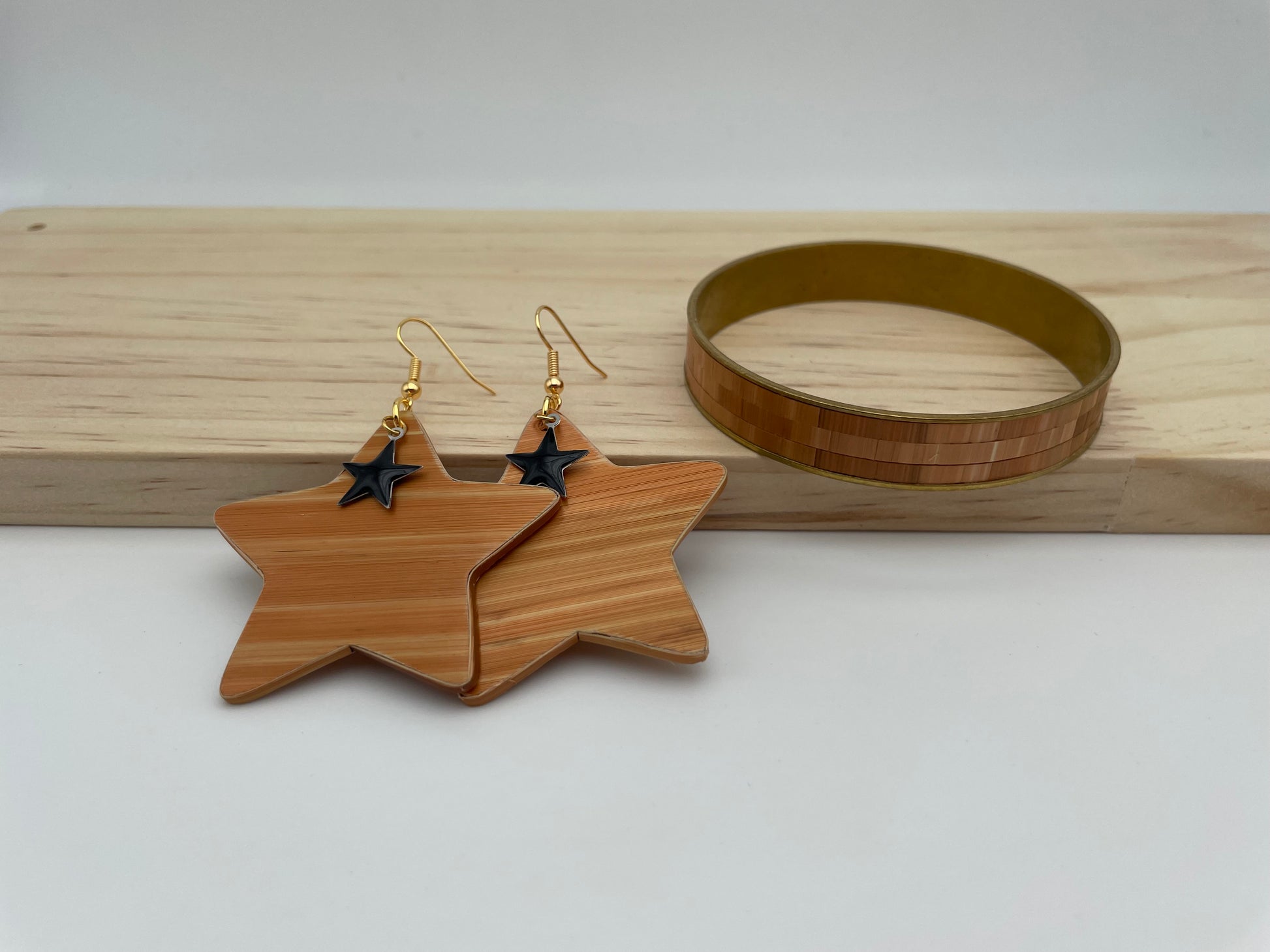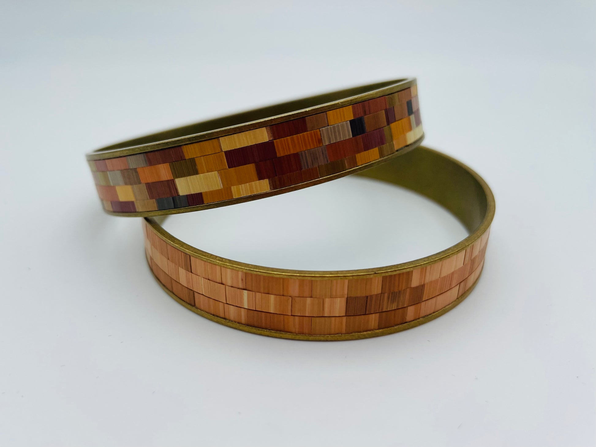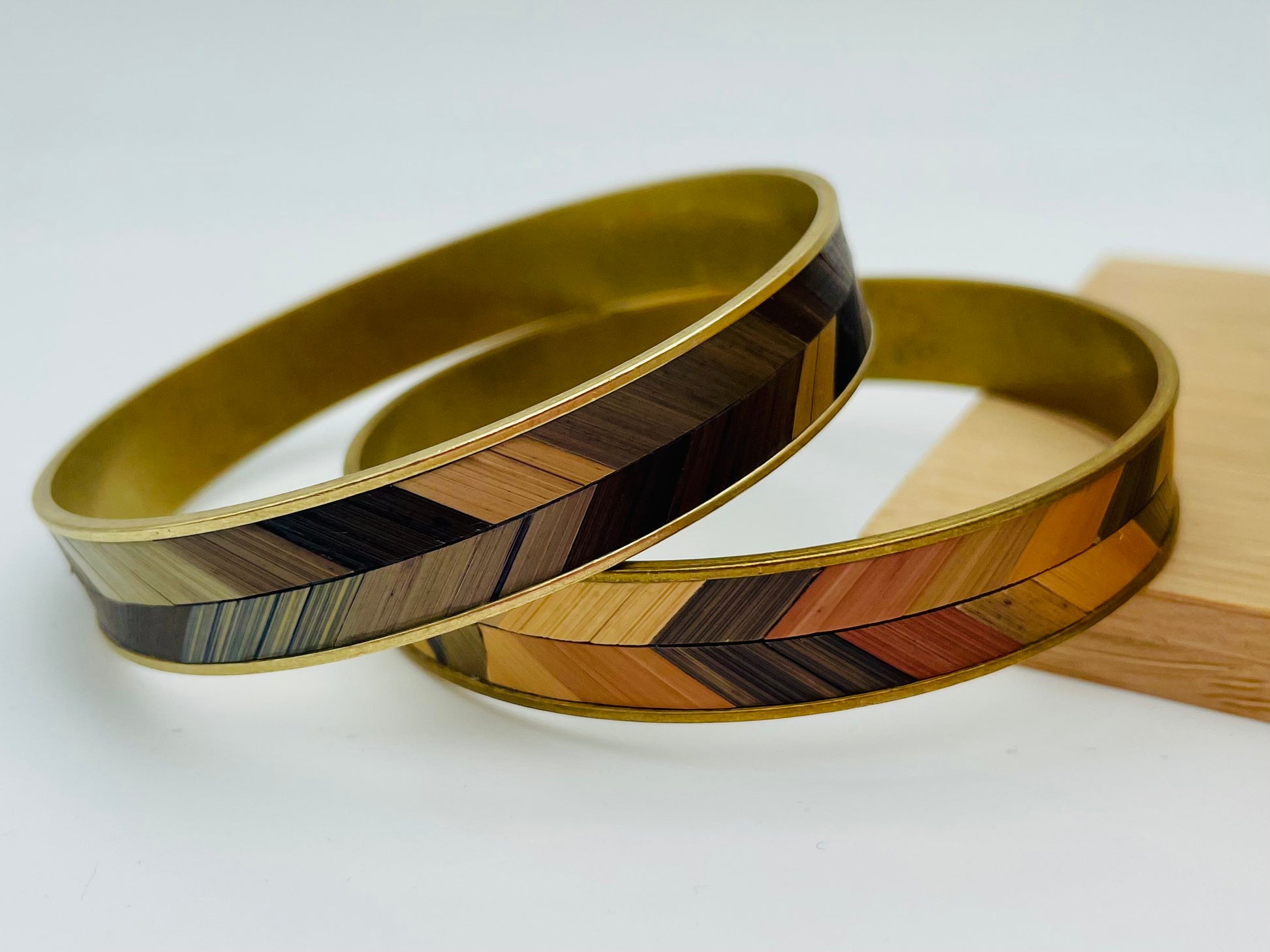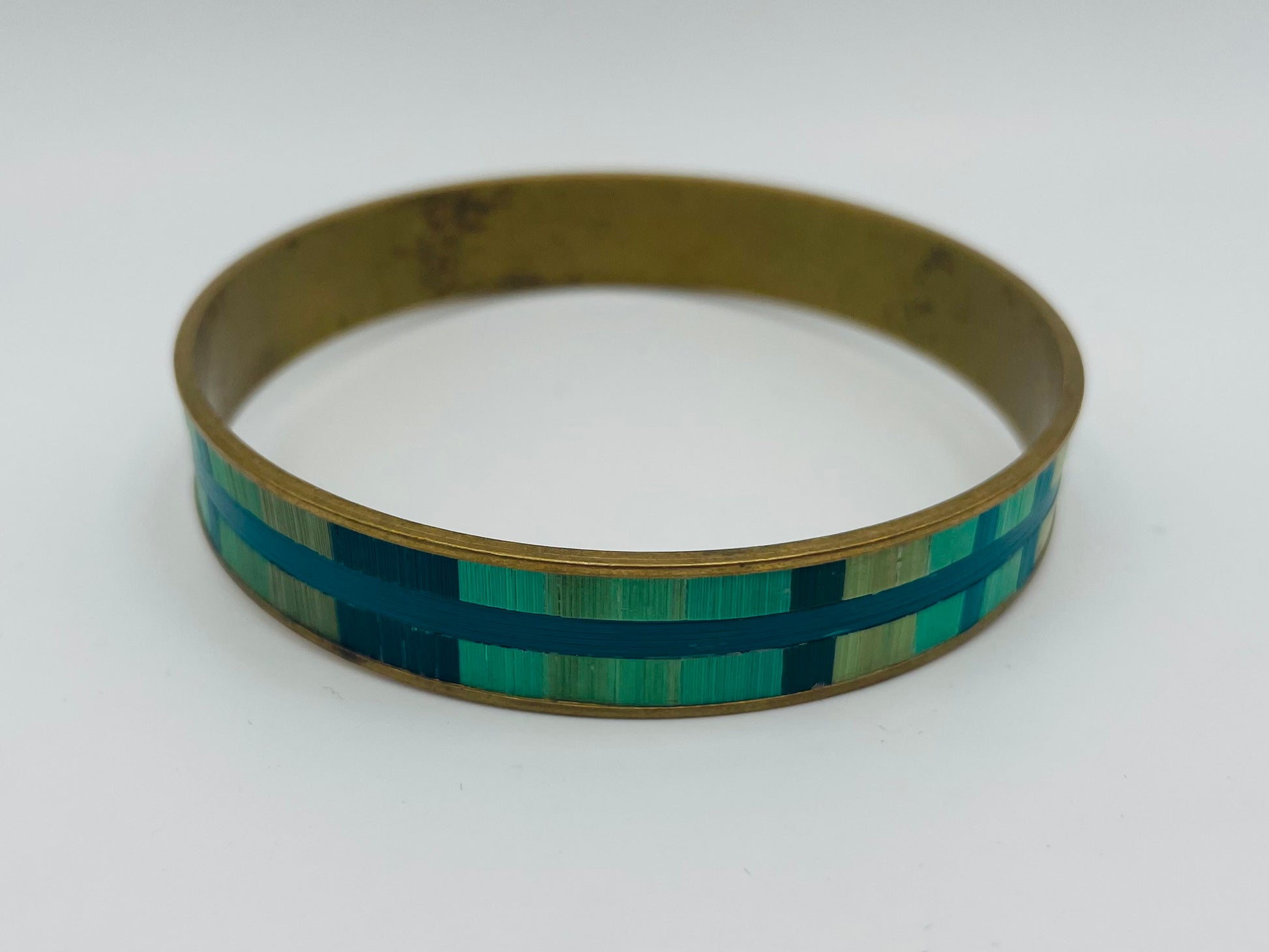 Jonc en laiton brut de taille moyenne recouvert de marqueterie de paille