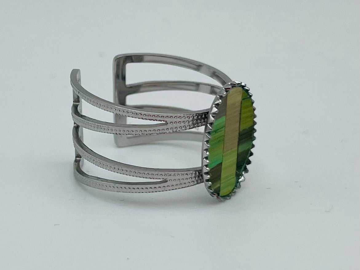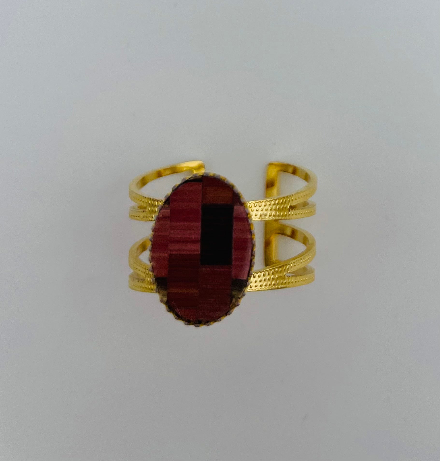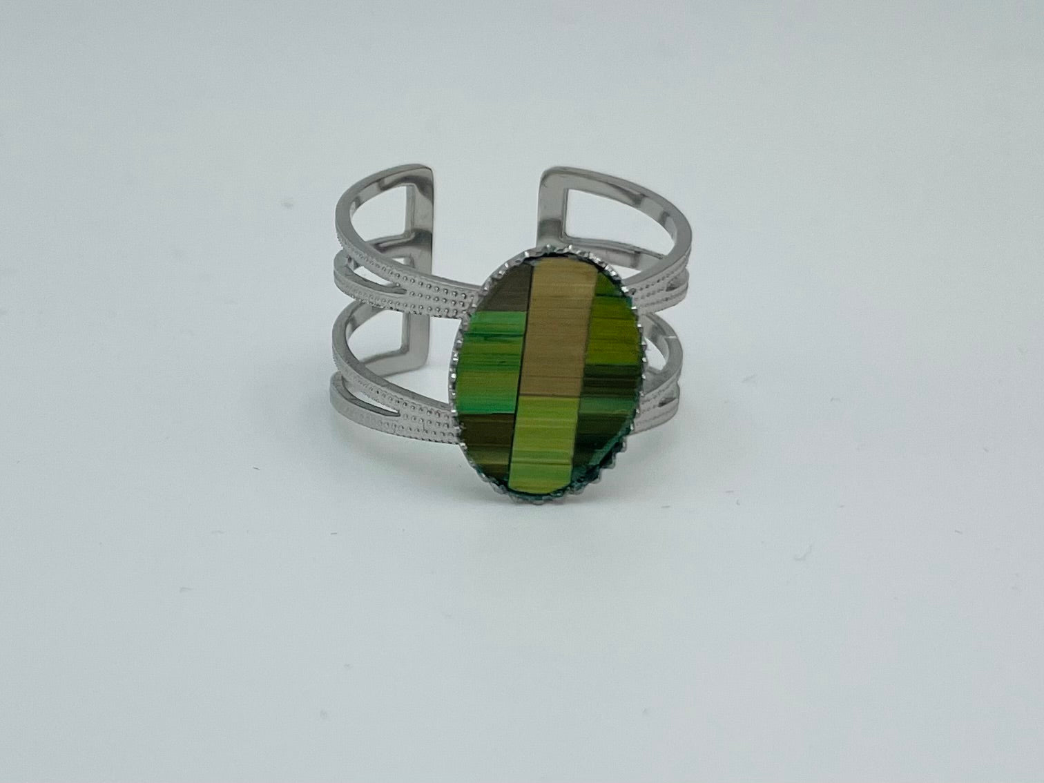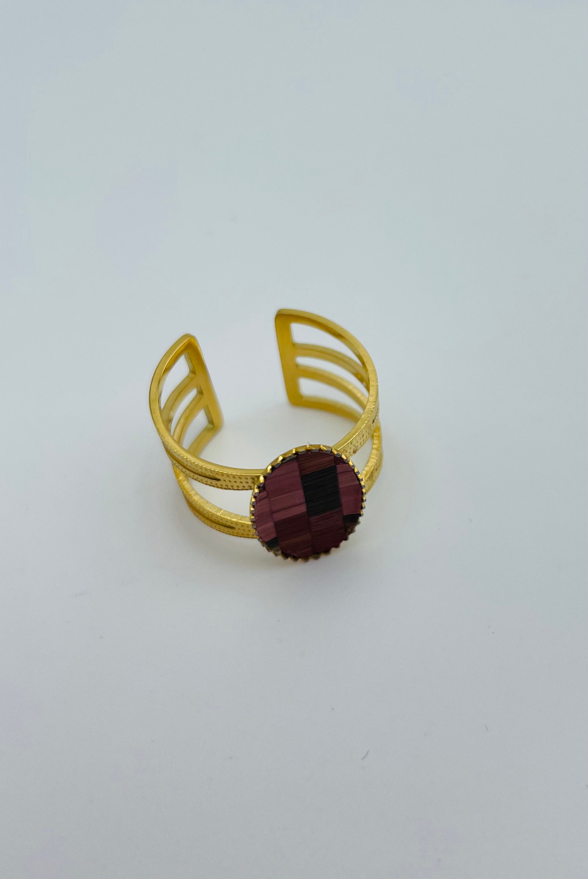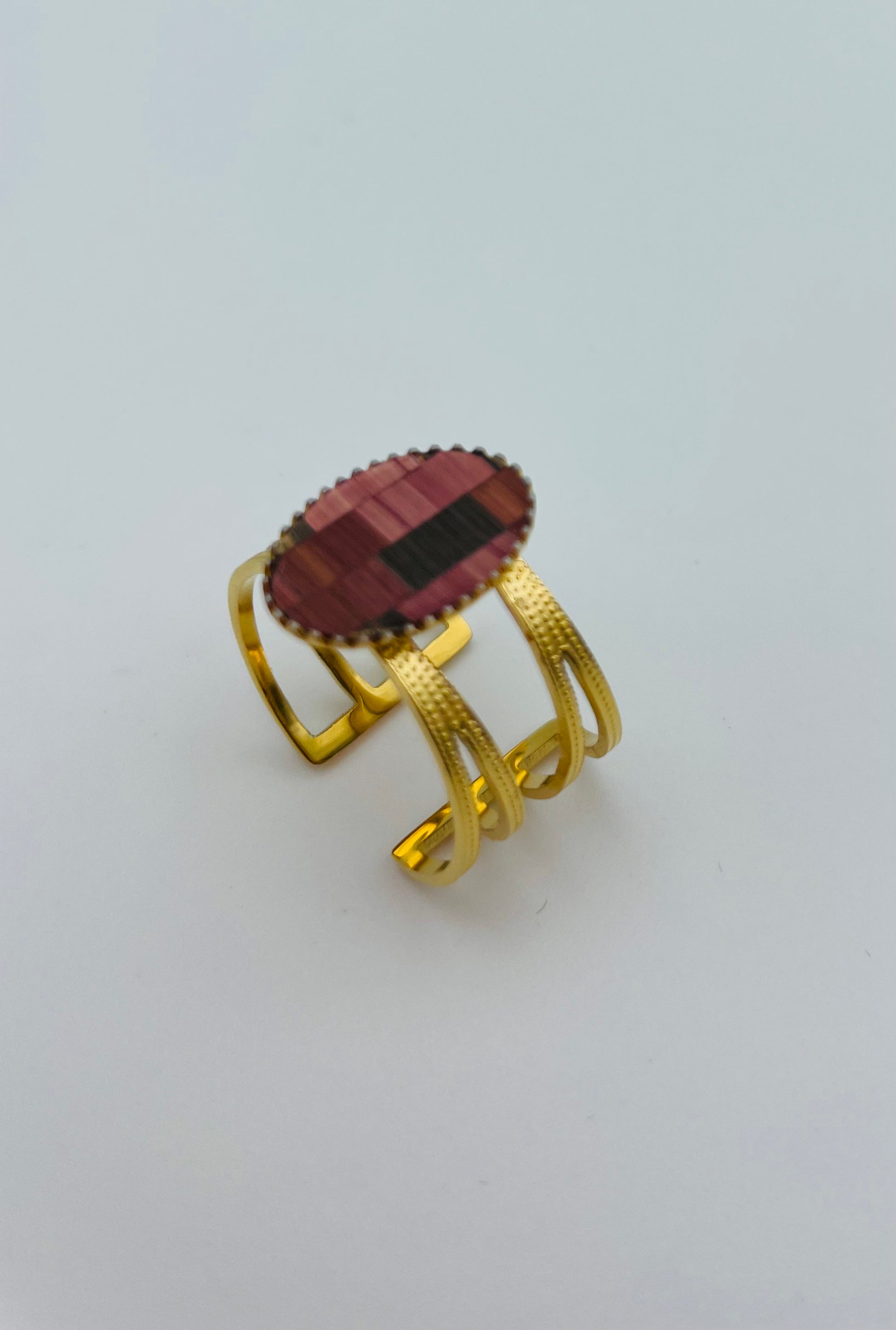 Bague en acier inoxydable 316L doré recouverte de marqueterie de paille comme de la mosaïque