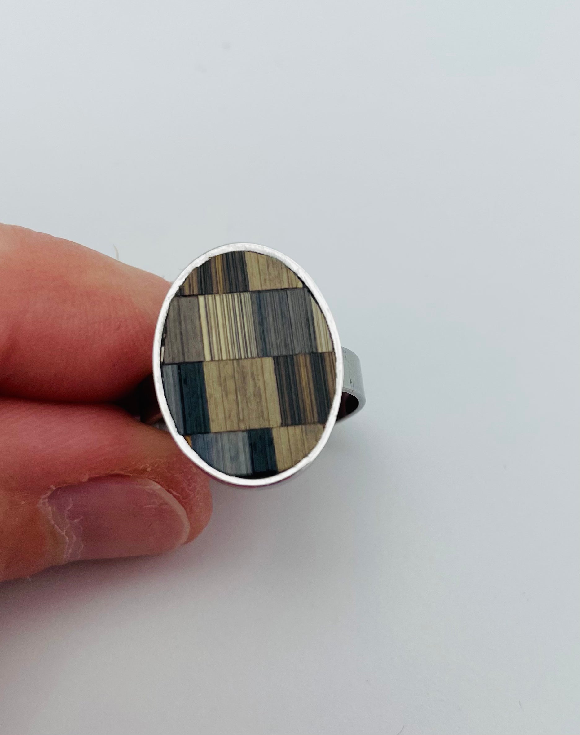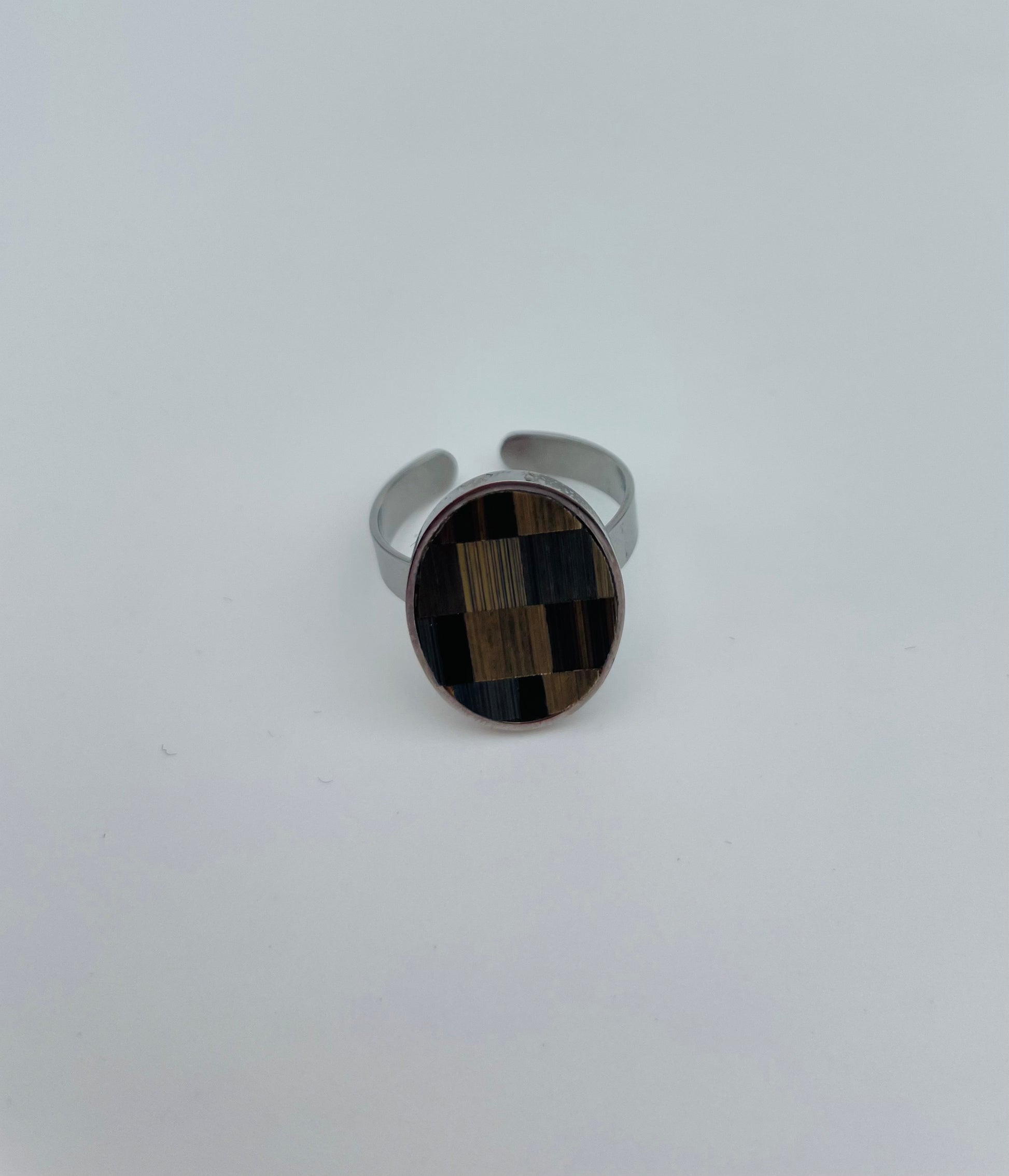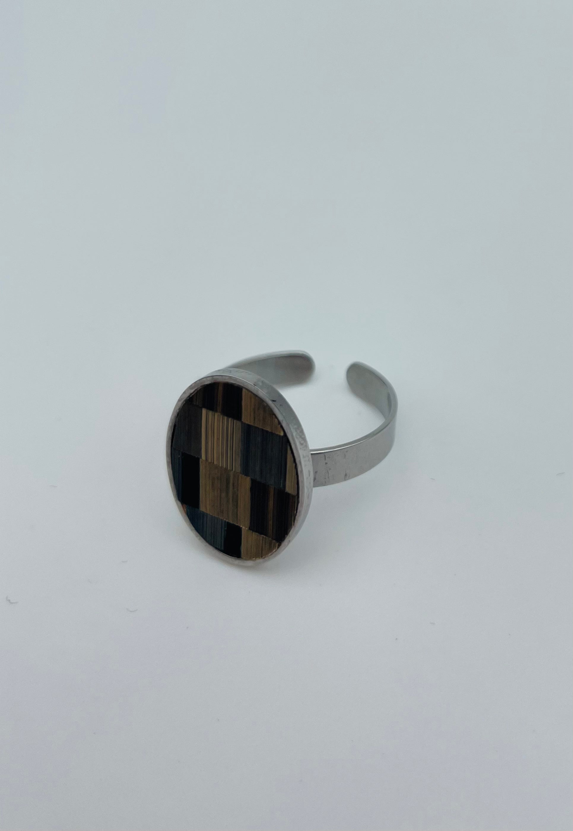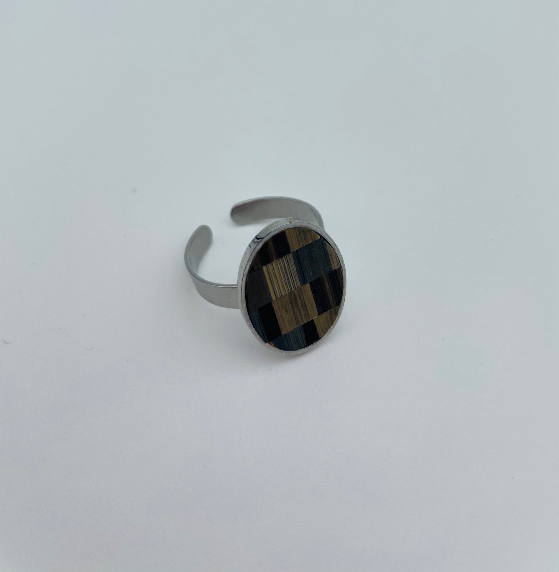 Bague en acier inoxydable 304 recouverte de marqueterie de paille comme de la mosaïque
