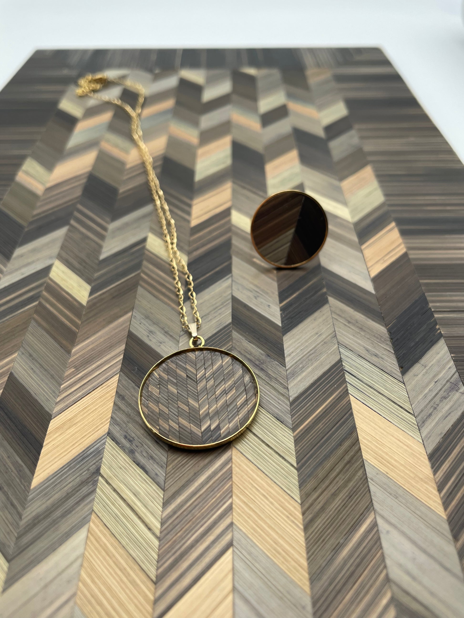 Elle est finement recouverte de marqueterie de paille pour offrir des reflets et des couleurs uniques à votre bijou.Une luxueuse mise à jour de votre style !