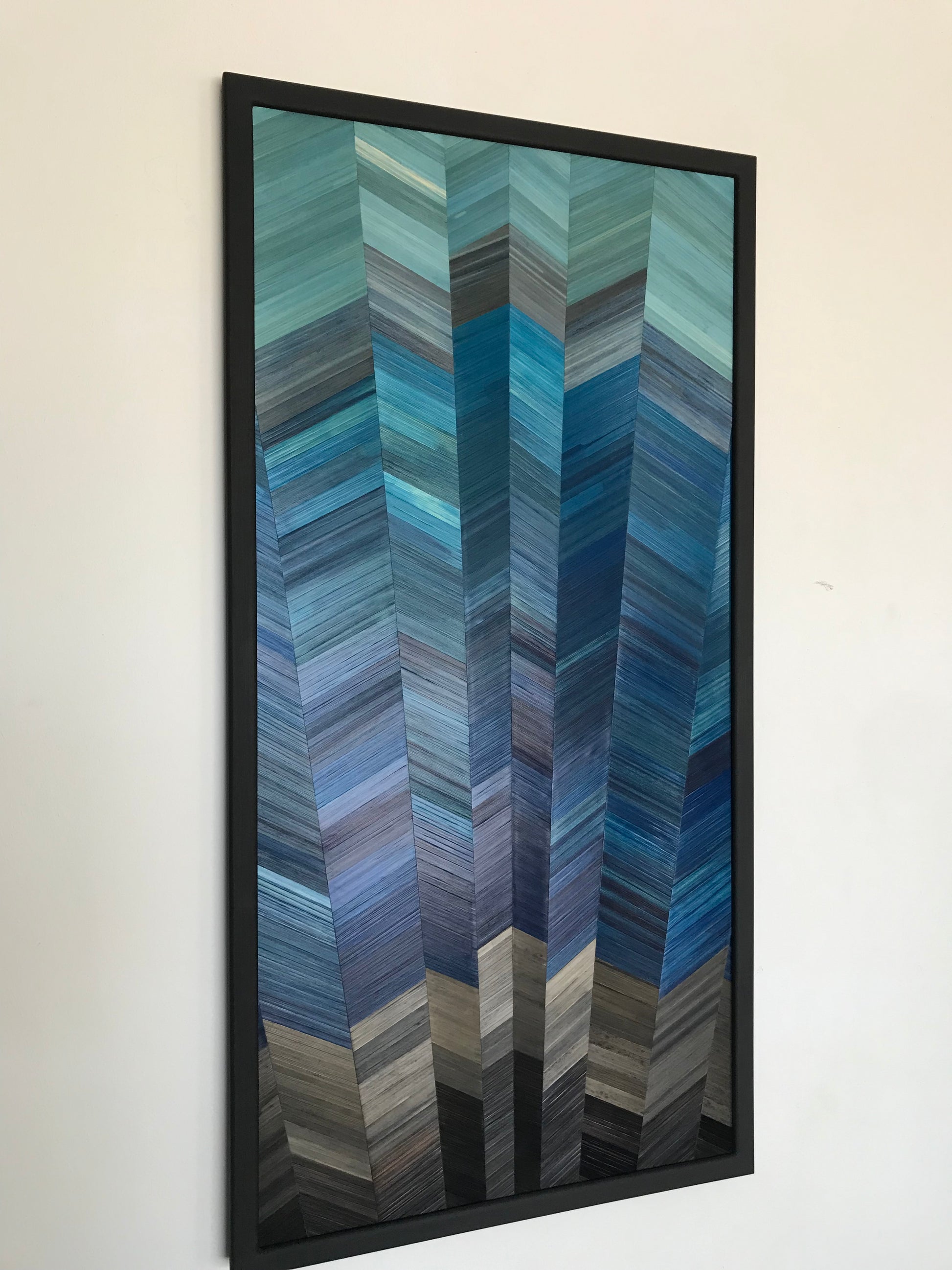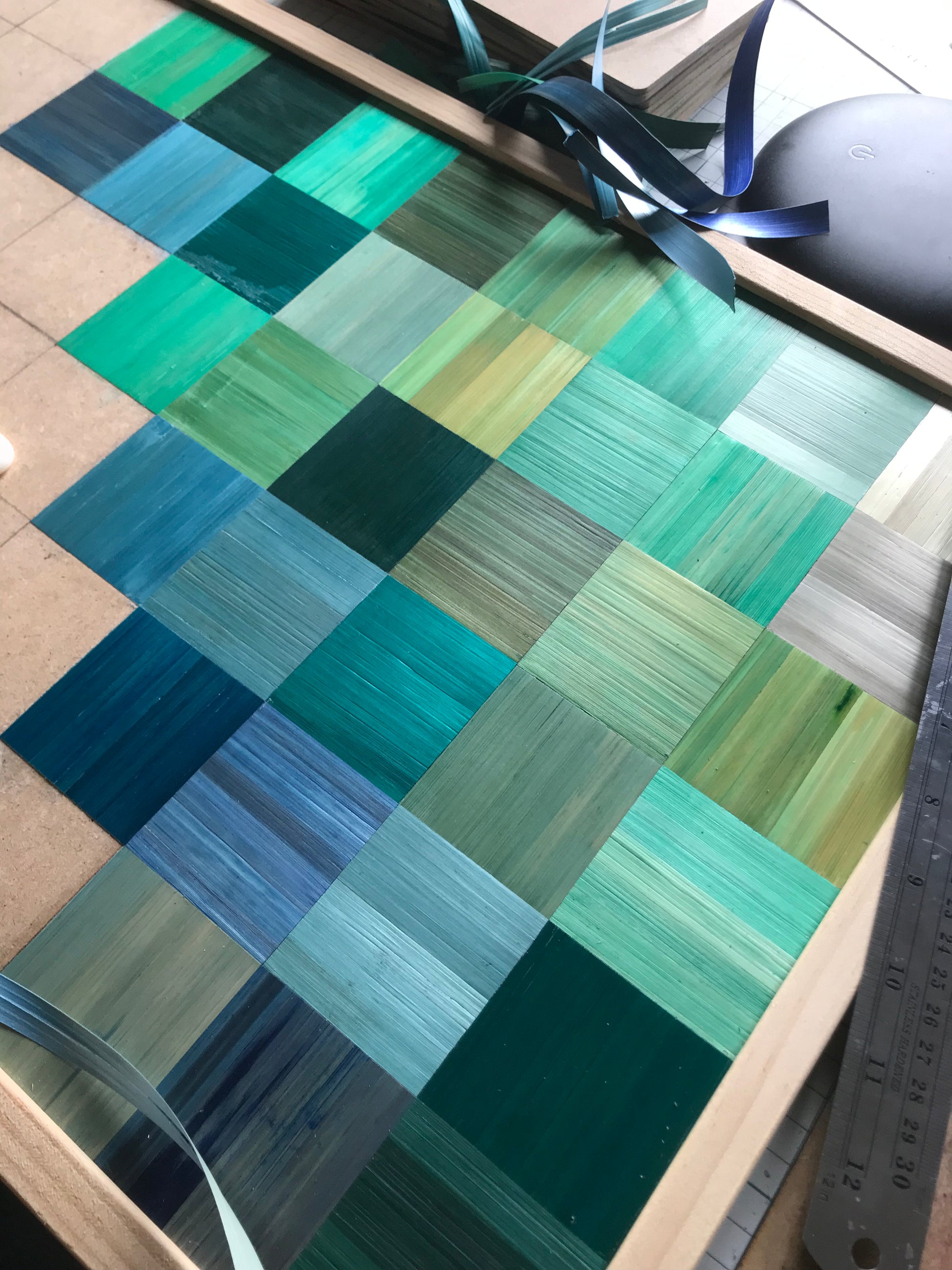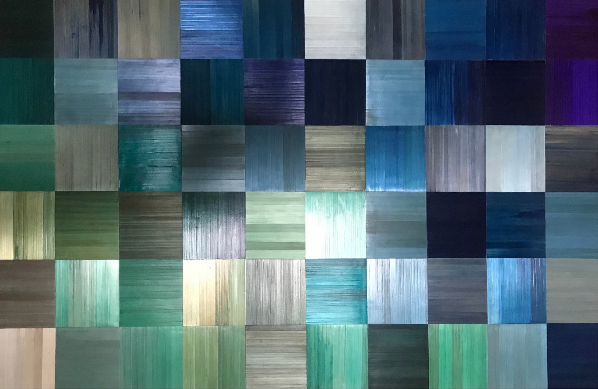 Sublimez votre décoration intérieure avec notre Damier en bleu et vert, un tableau élégant de 40/60cm composé d'une marqueterie de paille précieuse et lumineuse.