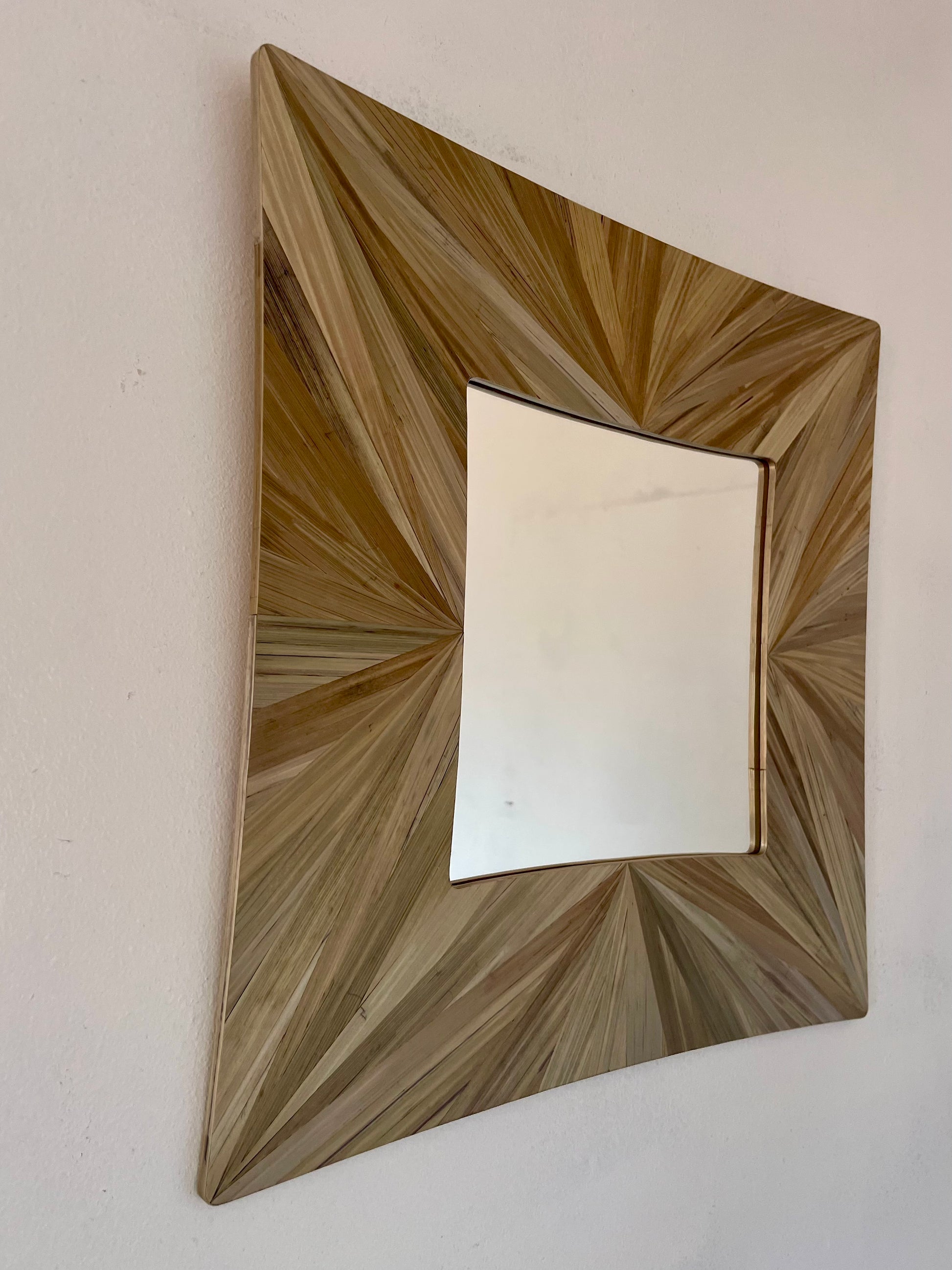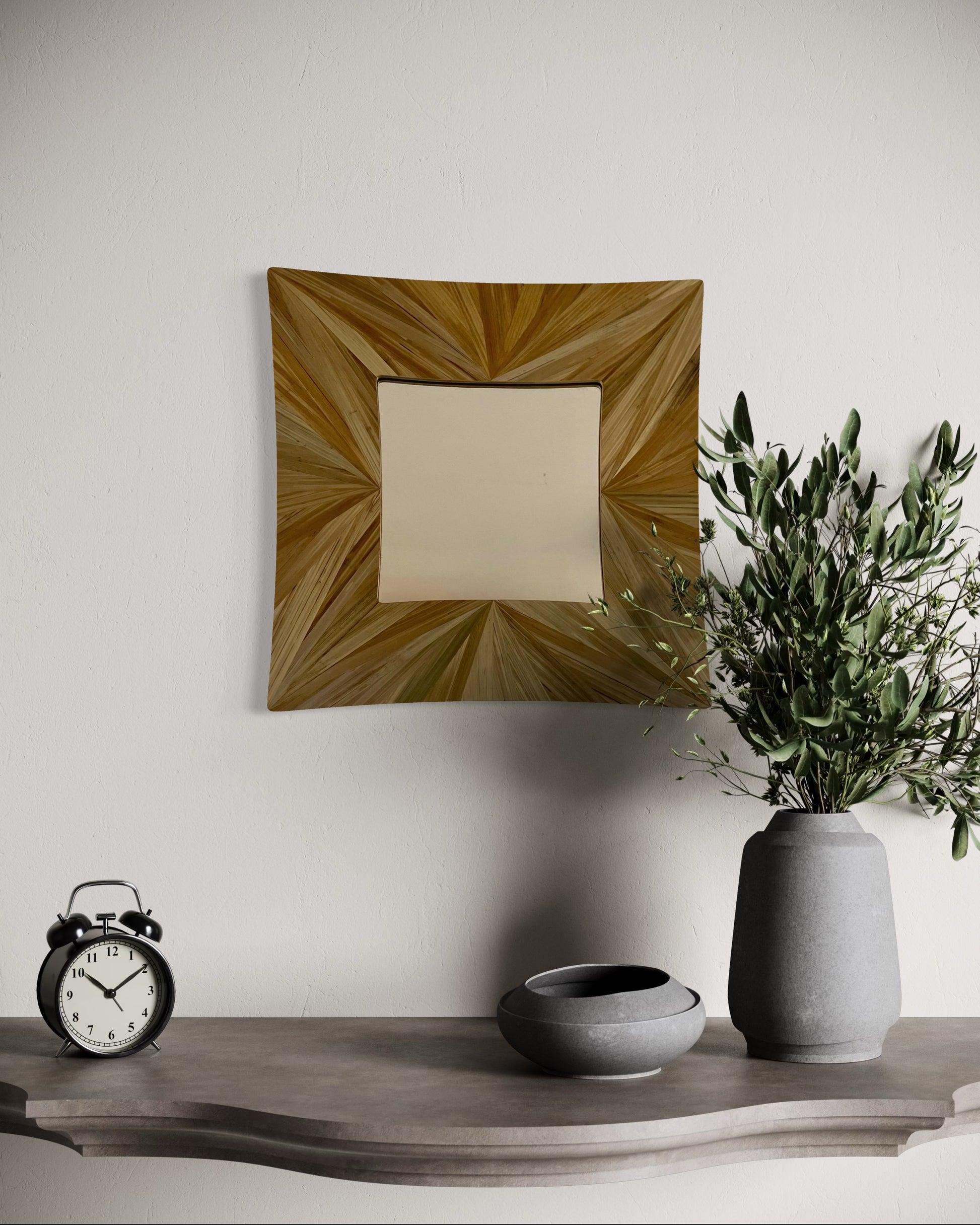 Découvrez mon miroir dans la collection « Envolée de paille », un chef-d'œuvre artisanal recouvert de marqueterie de paille dans différentes nuances de pailles. Avec sa couleur riche, son volume élégant et sa brillance chaleureuse, ce miroir est un mélange parfait de design intemporel et de qualité supérieure. Ajoutez une touche de luxe à votre espace avec ce miroir exclusif.