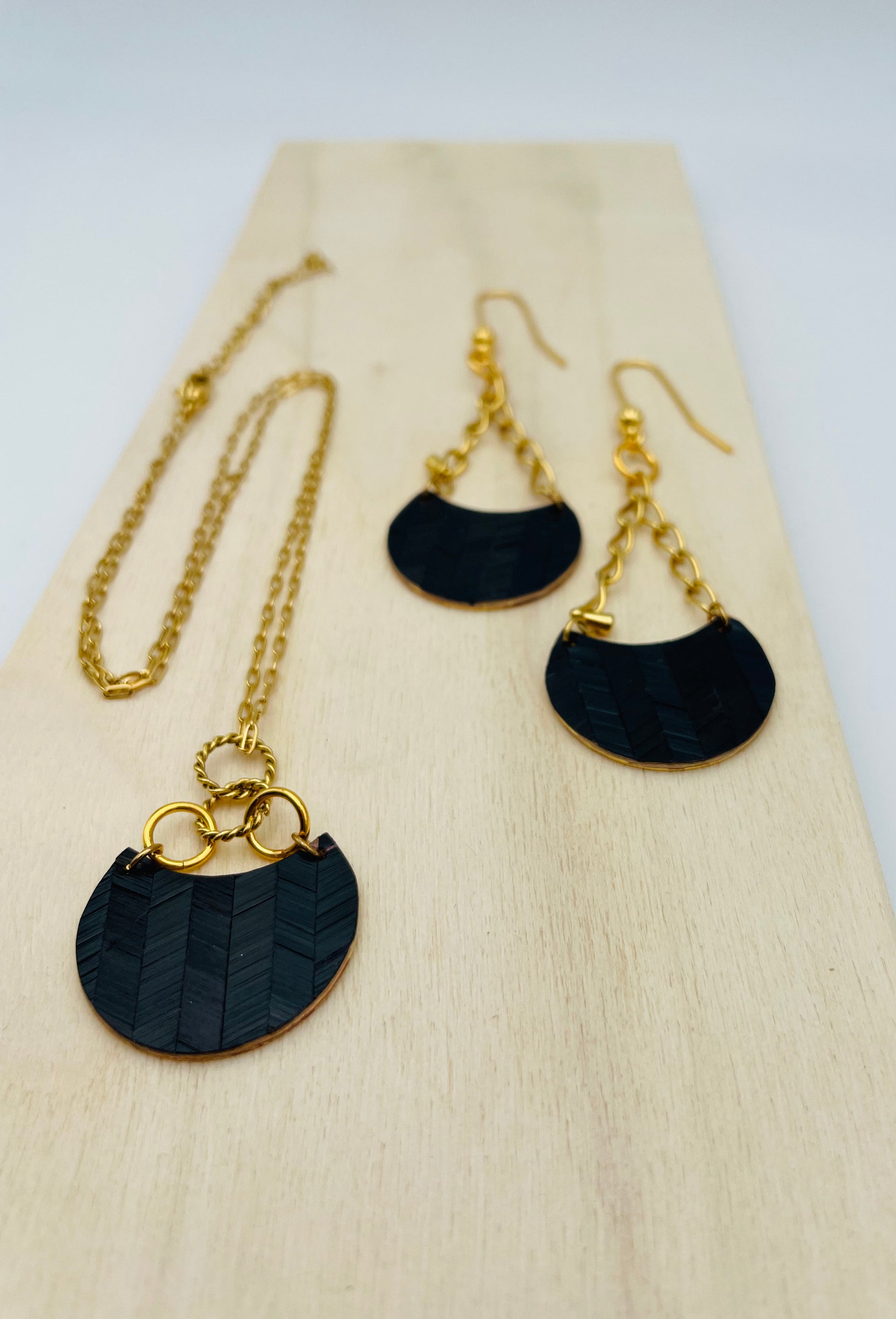 Faites de vous-même un objet de désir avec la parure black&gold, un bijou classique original et sophistiqué. La qualité de la marqueterie de paille noire, combinée avec la finition dorée à l'or, en font un accessoire parfait pour un style raffiné des occasions spéciales. Éblouissez vos amis avec cet accessoire élégant et exclusif.