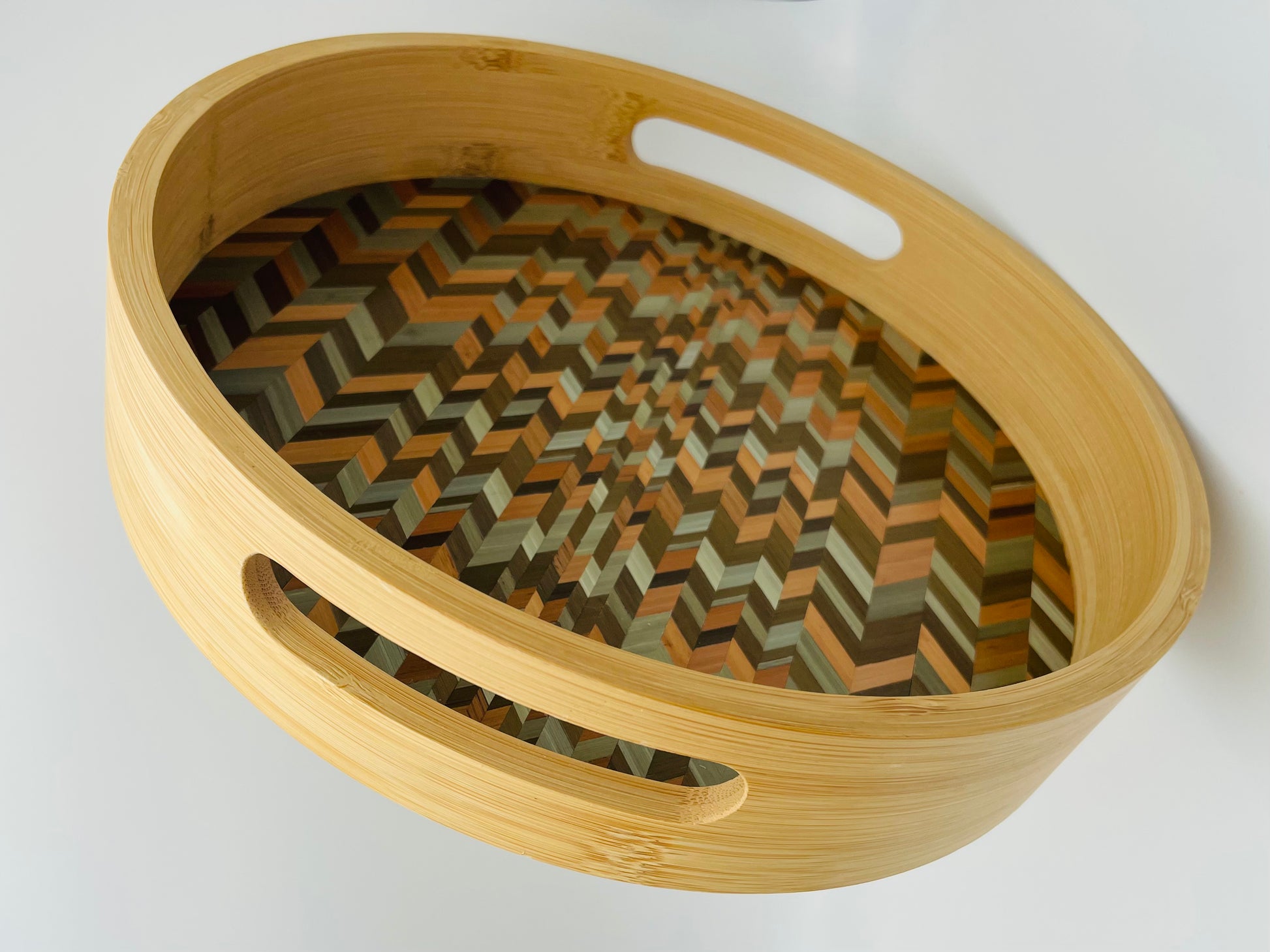 Ce plateau de luxe est fabriqué en bambou et revêtu de marqueterie de paille aux teintes chaudes et profondes. La combinaison unique de contraste et de lumière offre une beauté inégalée qui apporte une chaleur accueillante à votre décor. Transformez votre pièce dès aujourd'hui grâce à ce plateau de style exceptionnel.