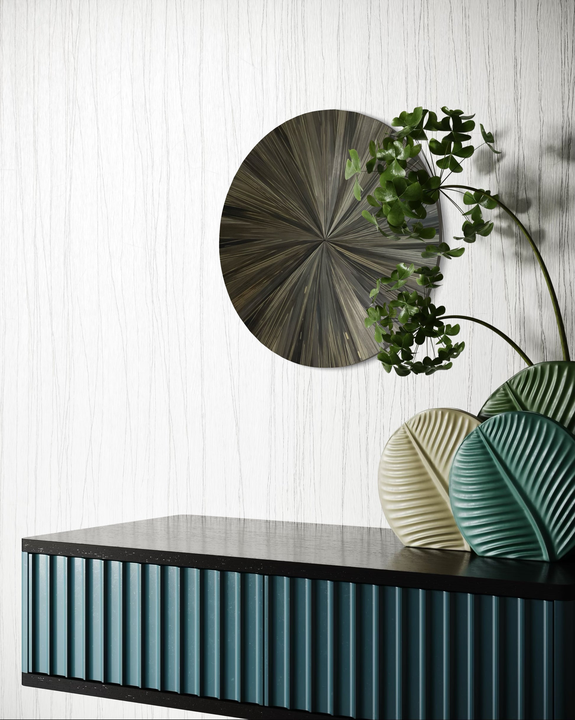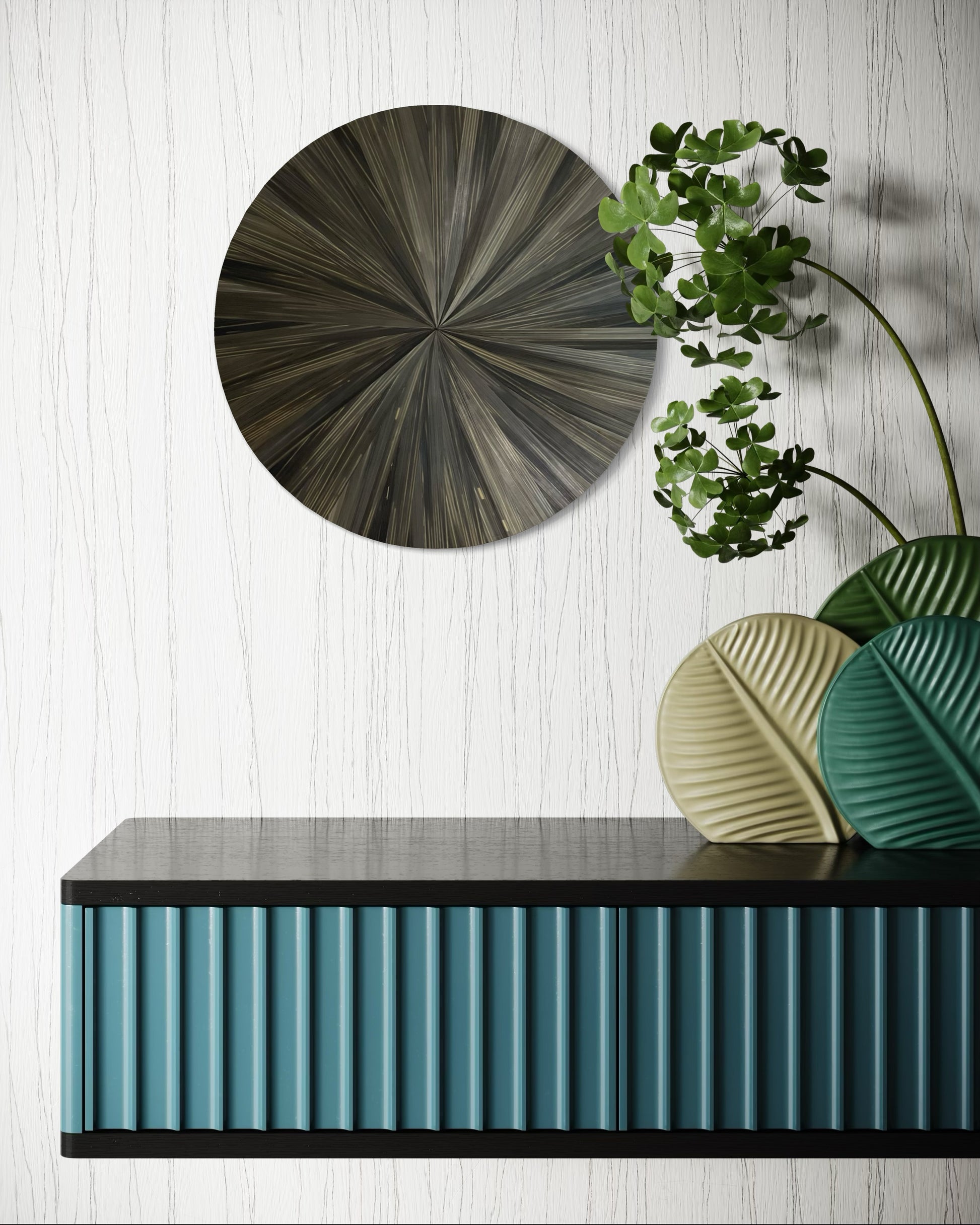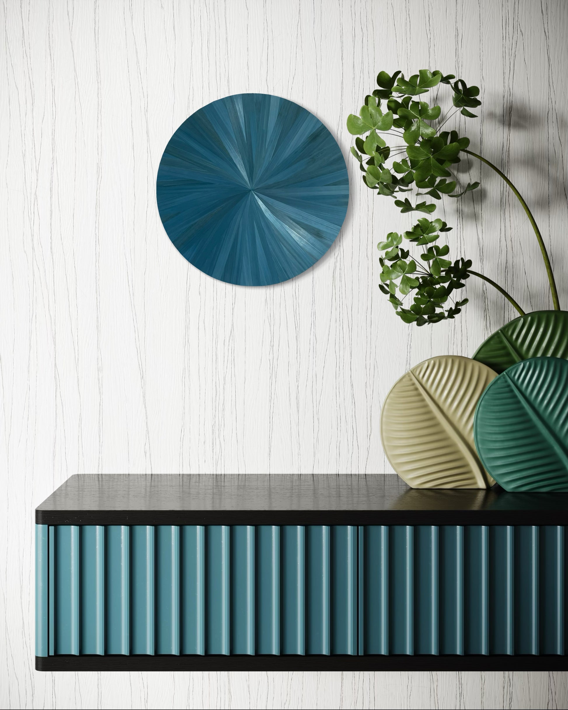 Apportez une touche d’élégance et de raffinement à votre intérieur avec ces créaations murales en marqueterie de paille, où chaque pièce capte la lumière et révèle des nuances profondes et chatoyantes. Réalisation entièrement à la main, ces tableaux jouent avec les reflets et la texture naturelle de la paille, sublimée par des pigments vibrants : un bleu turquoise, un gris vibrant et une couleur lié de vin unique