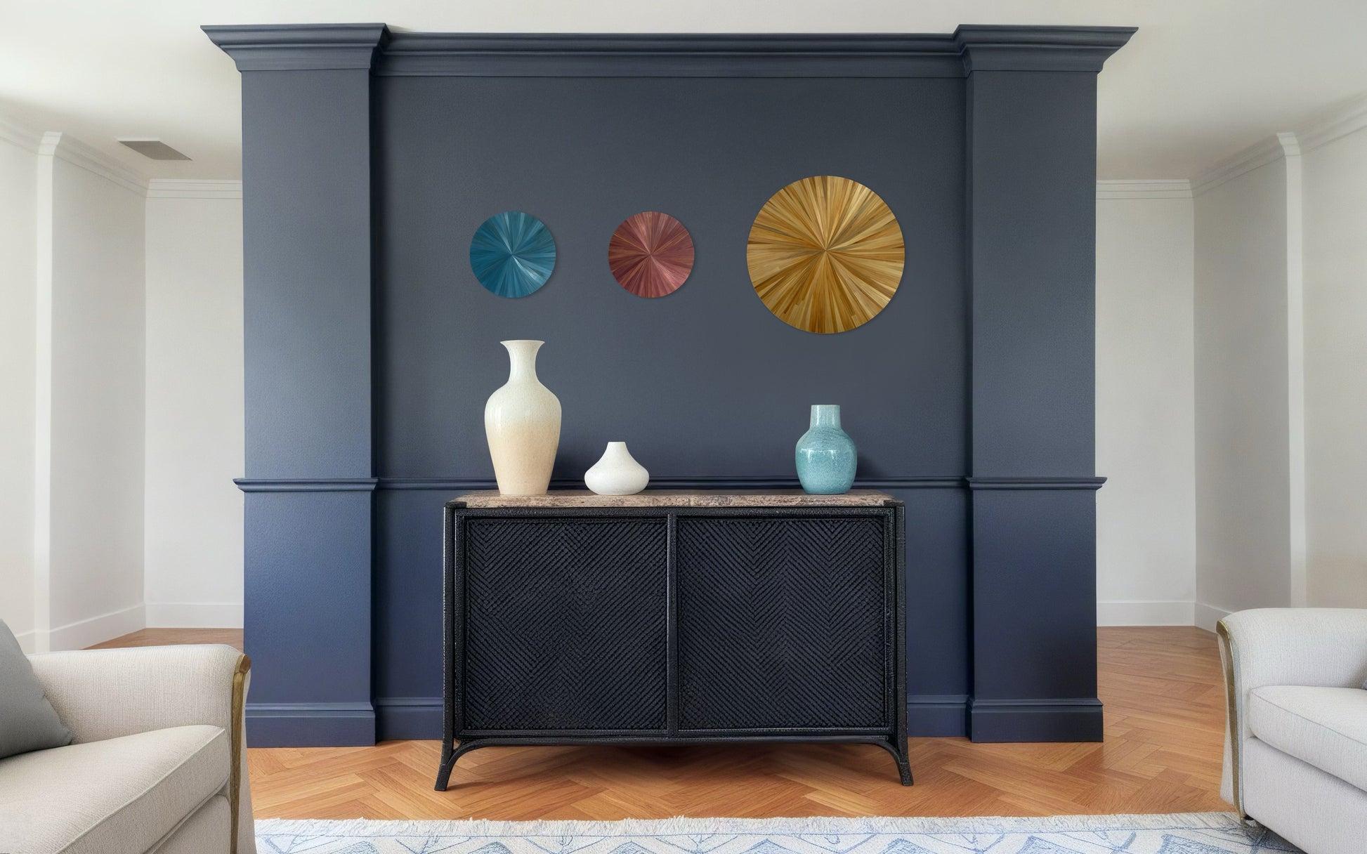 Collection murale en marqueterie de paille aux Reflets Chromatiques