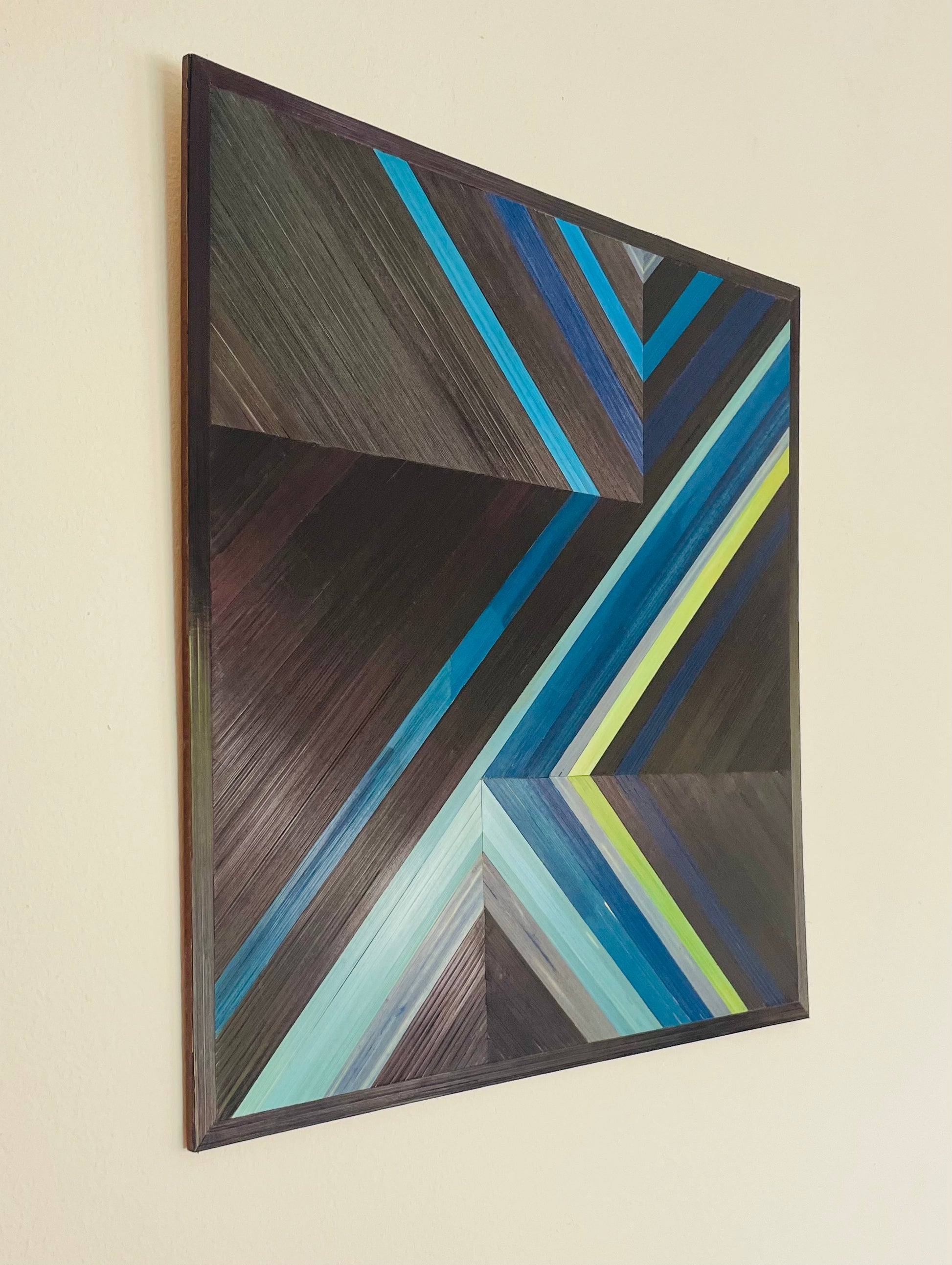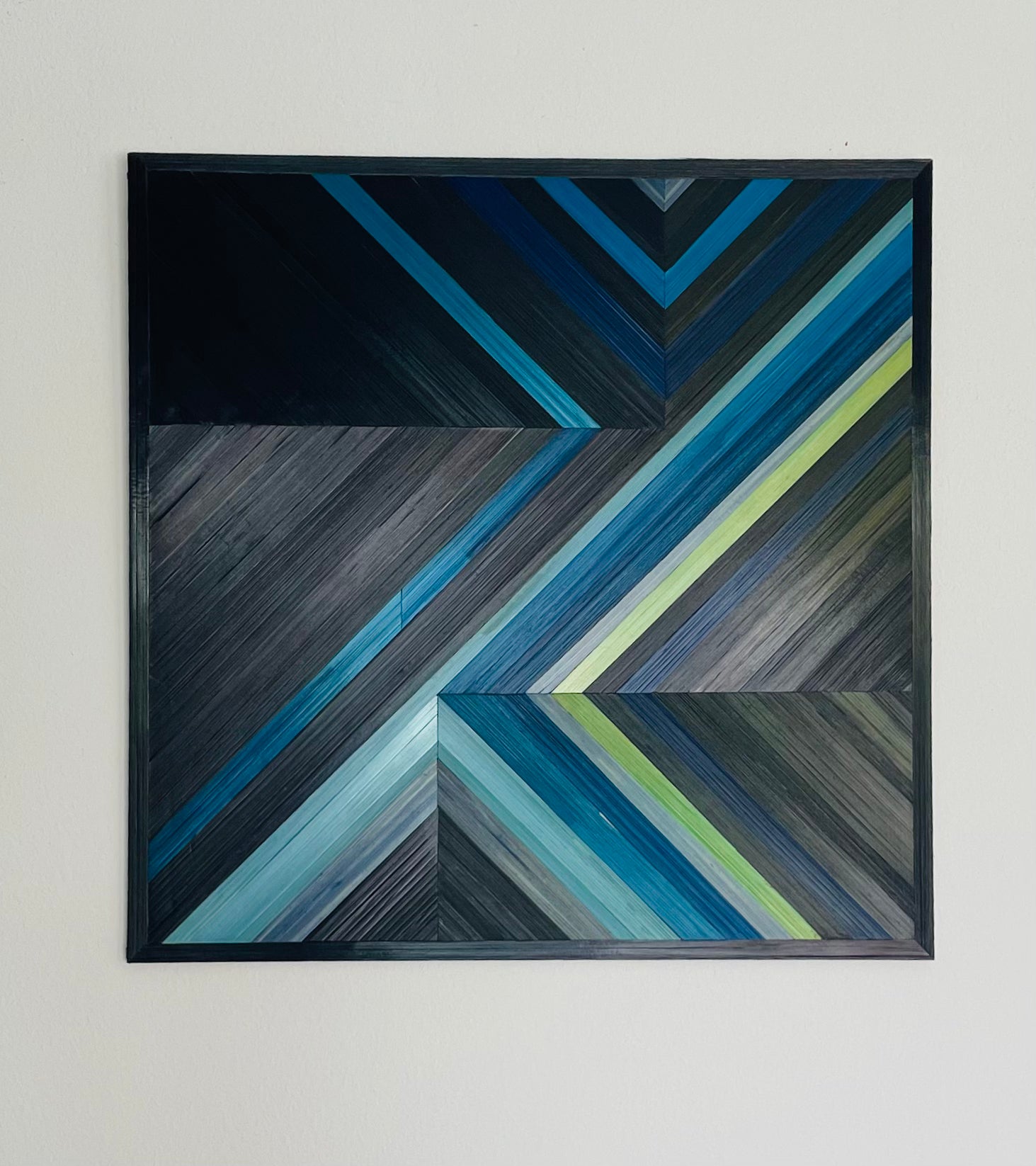 Sublimez votre décoration intérieure avec le Tableau géométrique. Fabriqué en marqueterie de paille, ce tableau élégant offre une géométrie décalée alliant subtilement le noir et le bleu, créant des jeux de lumière dans le mouvement de la paille. Une pièce unique pour un intérieur raffiné.